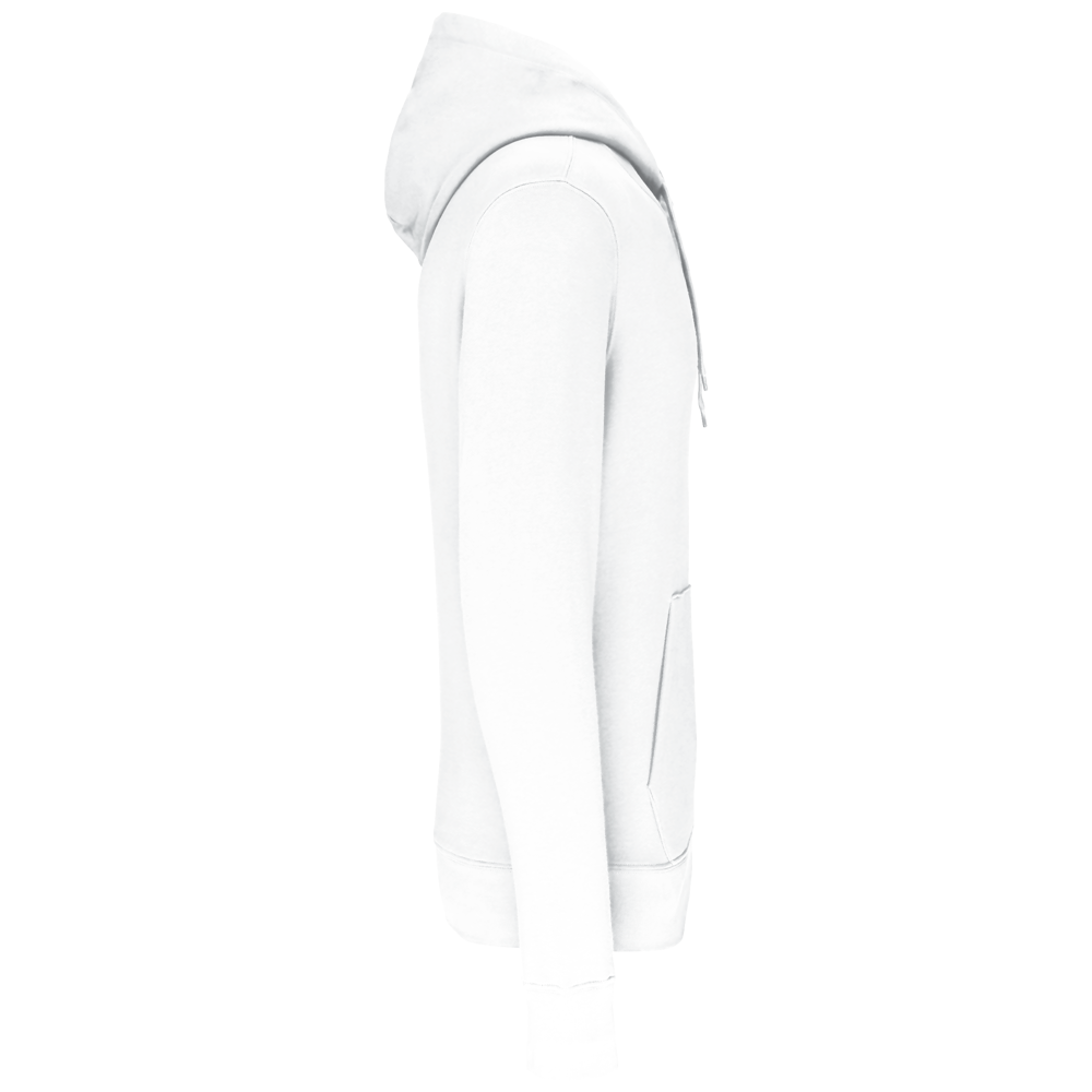 85% katoen / 15% polyester. Gemaakt van 85% biologisch katoen en 15% gerecycled polyester post-consumer. Buitenoppervlak 100% katoen. Geborsteld fleece 3 draden LSF (Low Shrinkage Fleece) aan de binnenkant. Gekamd katoen. Enzymgewassen. Rechte snit. 1x1 ribboord in buisconstructie voor een betere afwerking aan de mouwuiteinden en de onderkant. Kangoeroezak. Gevoerde capuchon 100% katoen, jerseykatoen 180 g. Nektape in toon-op-toon jersey en halvemaanvormige afwerking aan de binnenkant van de kraag. Afwerking met dubbel stiksel aan mouwuiteinden en onderkant. Geen merklabel in de kraag, maar enkel een maatlabel voor eenvoudige personalisatie.