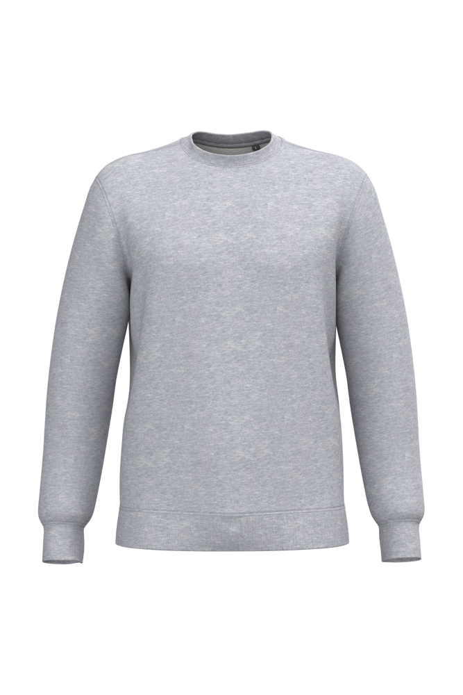 50% ringgesponnen katoen / 50% gerecycled polyester post-consumer. Geborsteld fleece aan de binnenkant. Straight snit. Cut-and-sew-techniek. 2x1 ribboord in buisconstructie voor een betere afwerking aan de hals, de mouwuiteinden en de onderkant. Toon-op-toon nektape in jersey in de kraag. Geen merklabel in de kraag, maar enkel een maatlabel voor eenvoudige personalisatie.