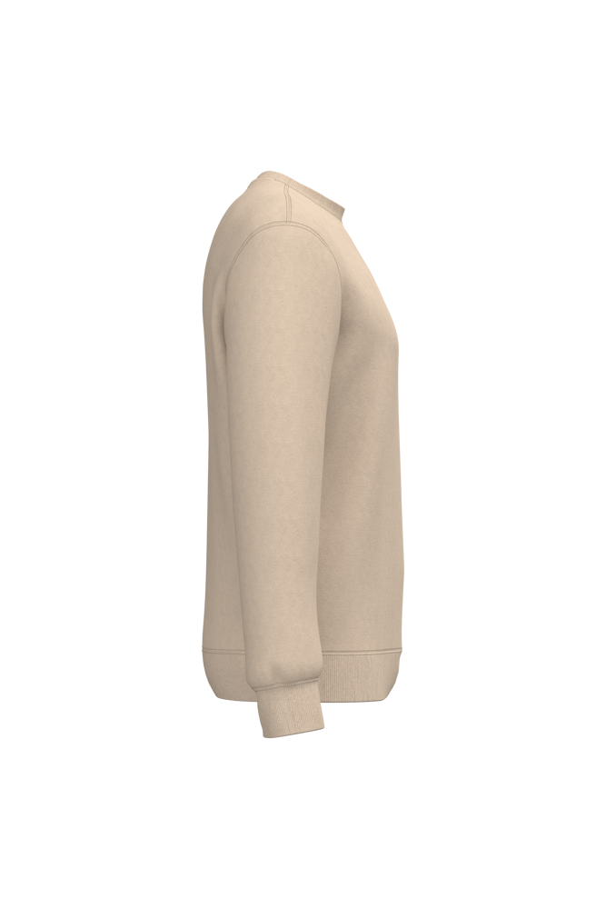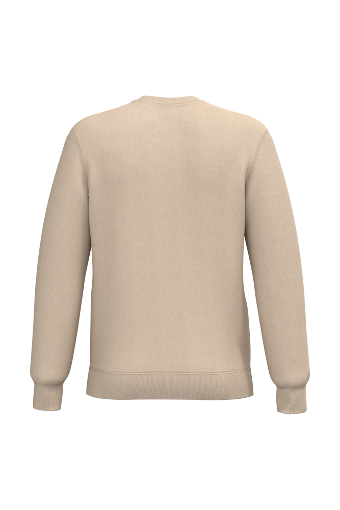 50% ringgesponnen katoen / 50% gerecycled polyester post-consumer. Geborsteld fleece aan de binnenkant. Straight snit. Cut-and-sew-techniek. 2x1 ribboord in buisconstructie voor een betere afwerking aan de hals, de mouwuiteinden en de onderkant. Toon-op-toon nektape in jersey in de kraag. Geen merklabel in de kraag, maar enkel een maatlabel voor eenvoudige personalisatie.