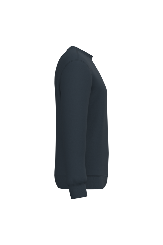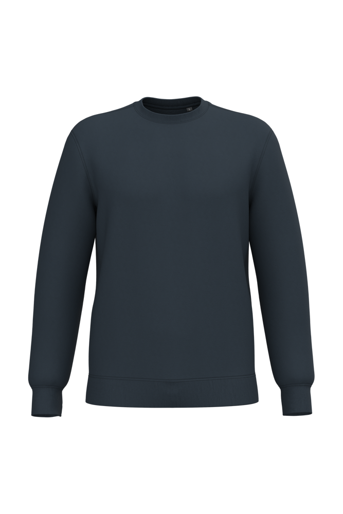 50% ringgesponnen katoen / 50% gerecycled polyester post-consumer. Geborsteld fleece aan de binnenkant. Straight snit. Cut-and-sew-techniek. 2x1 ribboord in buisconstructie voor een betere afwerking aan de hals, de mouwuiteinden en de onderkant. Toon-op-toon nektape in jersey in de kraag. Geen merklabel in de kraag, maar enkel een maatlabel voor eenvoudige personalisatie.