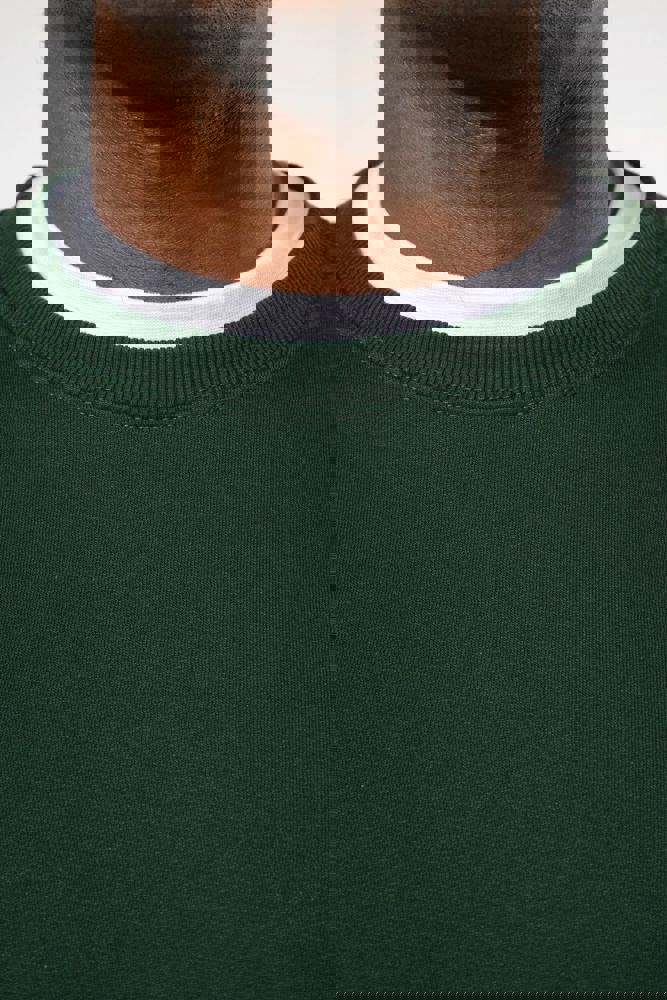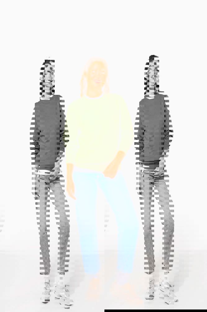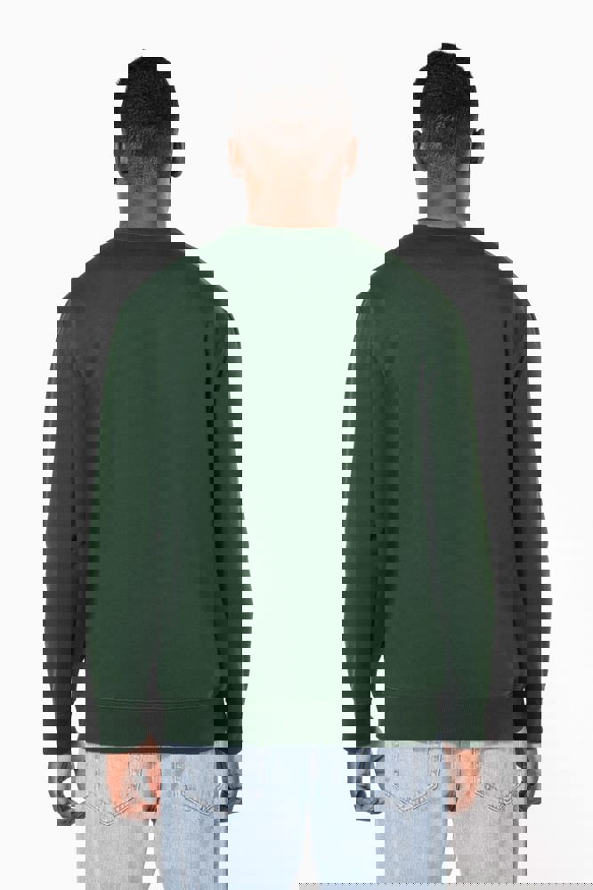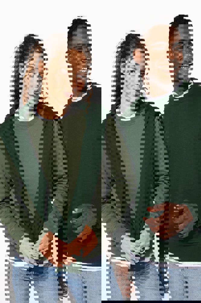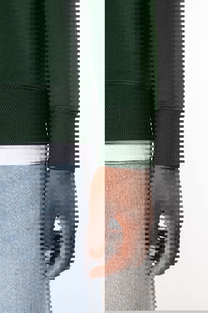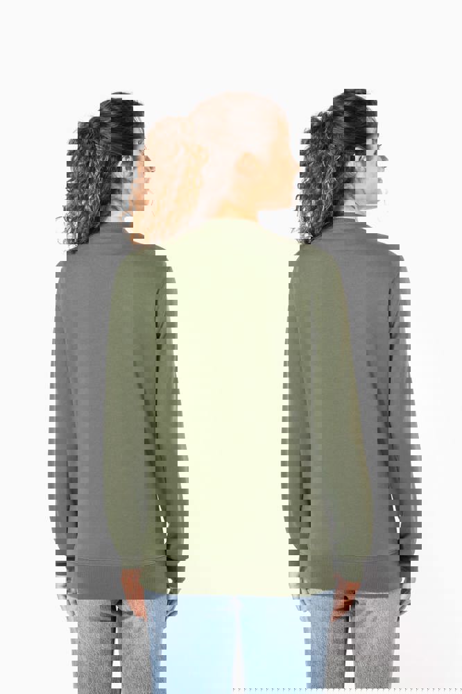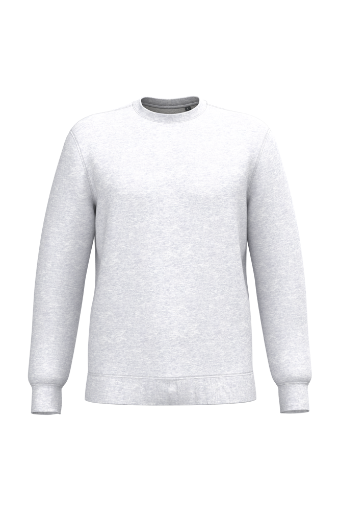 50% ringgesponnen katoen / 50% gerecycled polyester post-consumer. Geborsteld fleece aan de binnenkant. Straight snit. Cut-and-sew-techniek. 2x1 ribboord in buisconstructie voor een betere afwerking aan de hals, de mouwuiteinden en de onderkant. Toon-op-toon nektape in jersey in de kraag. Geen merklabel in de kraag, maar enkel een maatlabel voor eenvoudige personalisatie.