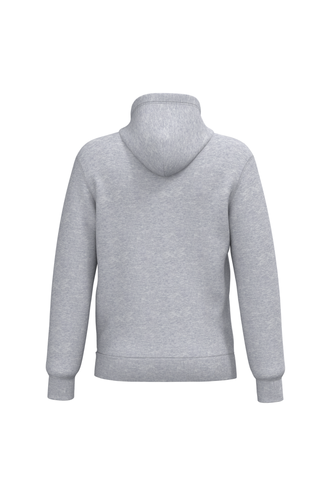 50% ringgesponnen katoen / 50% gerecycled polyester post-consumer. Geborsteld fleece aan de binnenkant. Straight snit. Cut-and-sew-techniek. 2x1 ribboord in buisconstructie voor een betere afwerking aan de hals, de mouwuiteinden en de onderkant. Kangoeroezak. Gevoerde capuchon in jersey-polykatoen met platte aanrijgkoordjes. Ton-sur-ton nektape in jersey in de kraag. Geen merklabel in de kraag, maar enkel een maatlabel voor eenvoudige personalisatie.