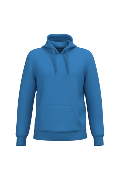 50% ringgesponnen katoen / 50% gerecycled polyester post-consumer. Geborsteld fleece aan de binnenkant. Straight snit. Cut-and-sew-techniek. 2x1 ribboord in buisconstructie voor een betere afwerking aan de hals, de mouwuiteinden en de onderkant. Kangoeroezak. Gevoerde capuchon in jersey-polykatoen met platte aanrijgkoordjes. Ton-sur-ton nektape in jersey in de kraag. Geen merklabel in de kraag, maar enkel een maatlabel voor eenvoudige personalisatie.