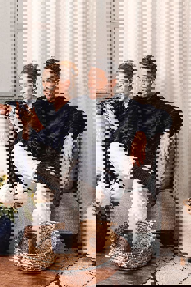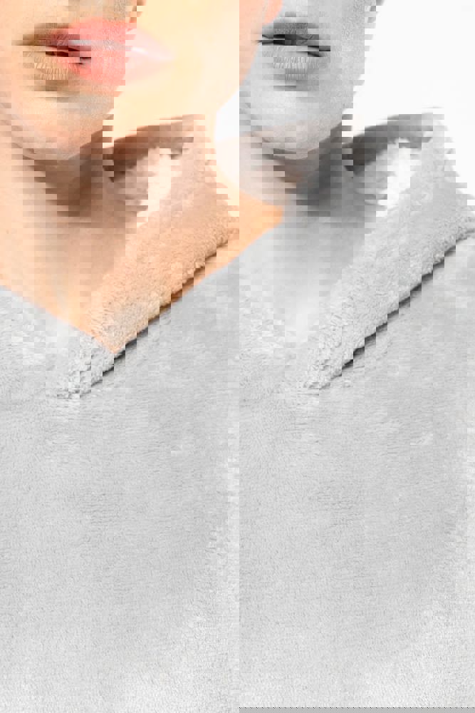 100% polyester. Oversized model met afhangende schouders. Dubbelzijdige stof, buitenzijde van ribfluweel en binnenzijde van sherpa. Vooraan gekruiste capuchon in twee panelen, afgewerkt met dubbel stiksel. Lange mouwen met een mouwuiteinde in 1x1 ribboord. In de ribboord aan de mouwuiteinden zit elasthan om vervorming te voorkomen. Kangoeroezak. De boord onderaan kreeg een dubbel stiksel. Geen merklabel, maar een maatlabel in de kraag voor eenvoudige personalisatie.