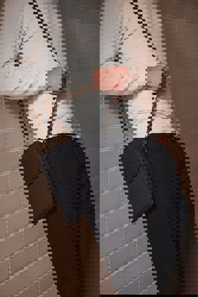 100% gerecycleerd polyester. Schoudertas met 2 ritsvakken en een voorste zak met een magnetische knoop. Volledig verstelbare schouderriem. KIALMA is de exclusieve collectie tassen en accessoires van K-loop. In het garen van de producten van K-loop zitten trackers. Dankzij de blockchain-technologie maken ze de hele productieketen transparant. Een speciaal label met een QR-code biedt toegang tot het Aware™-platform. Zo kunnen de certificeringen makkelijk worden geraadpleegd met een smartphone.