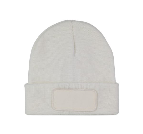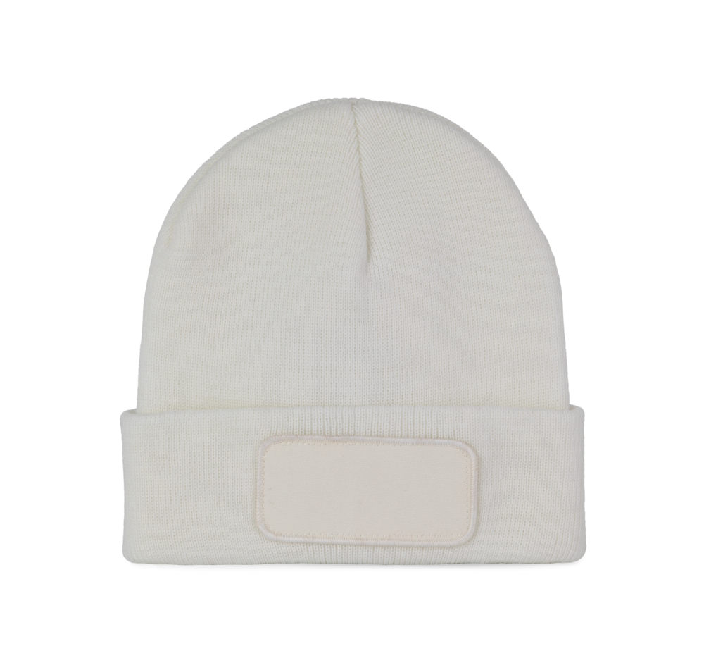 40% gerecycleerd polyester / 20% polyester / 40% acryl. Muts met gebreide omslag in acryl en polyester. Heel comfortabele Thinsulate™-fleecevoering. Katoenen patch aan de voorkant, voor eenvoudige personalisatie. Tear-away merklabel.