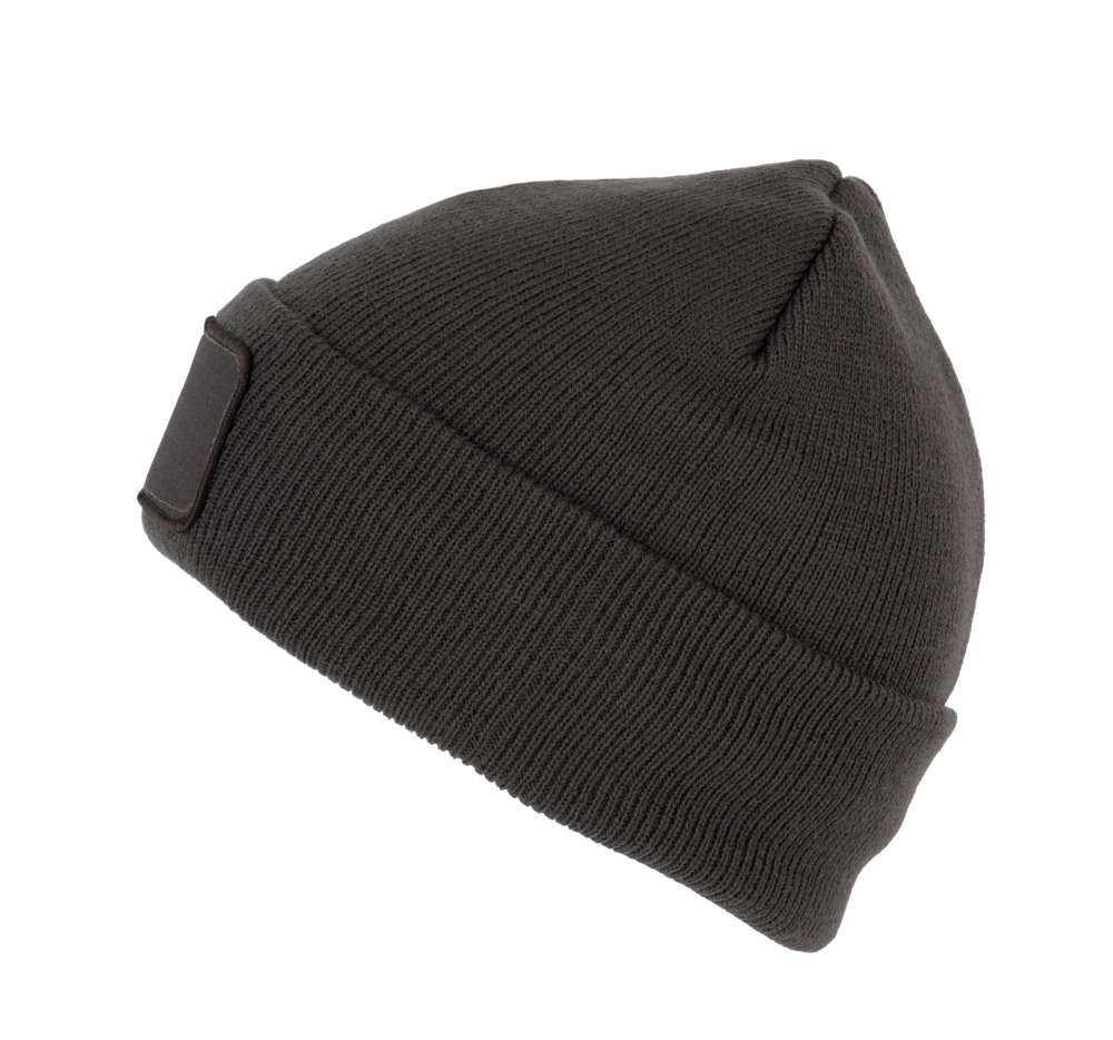 100% acryl. Gebreide muts met omslag in zacht acryl. Katoenen patch aan de voorkant, voor eenvoudige personalisatie. Heel comfortabele Thinsulate-fleecevoering. Tear-away merklabel.