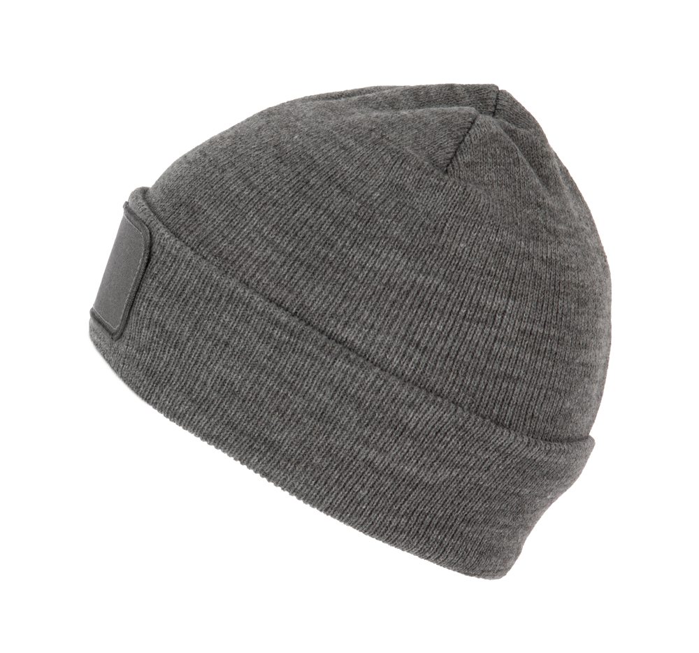 100% acryl. Gebreide muts met omslag in zacht acryl. Katoenen patch aan de voorkant, voor eenvoudige personalisatie. Heel comfortabele Thinsulate-fleecevoering. Tear-away merklabel.