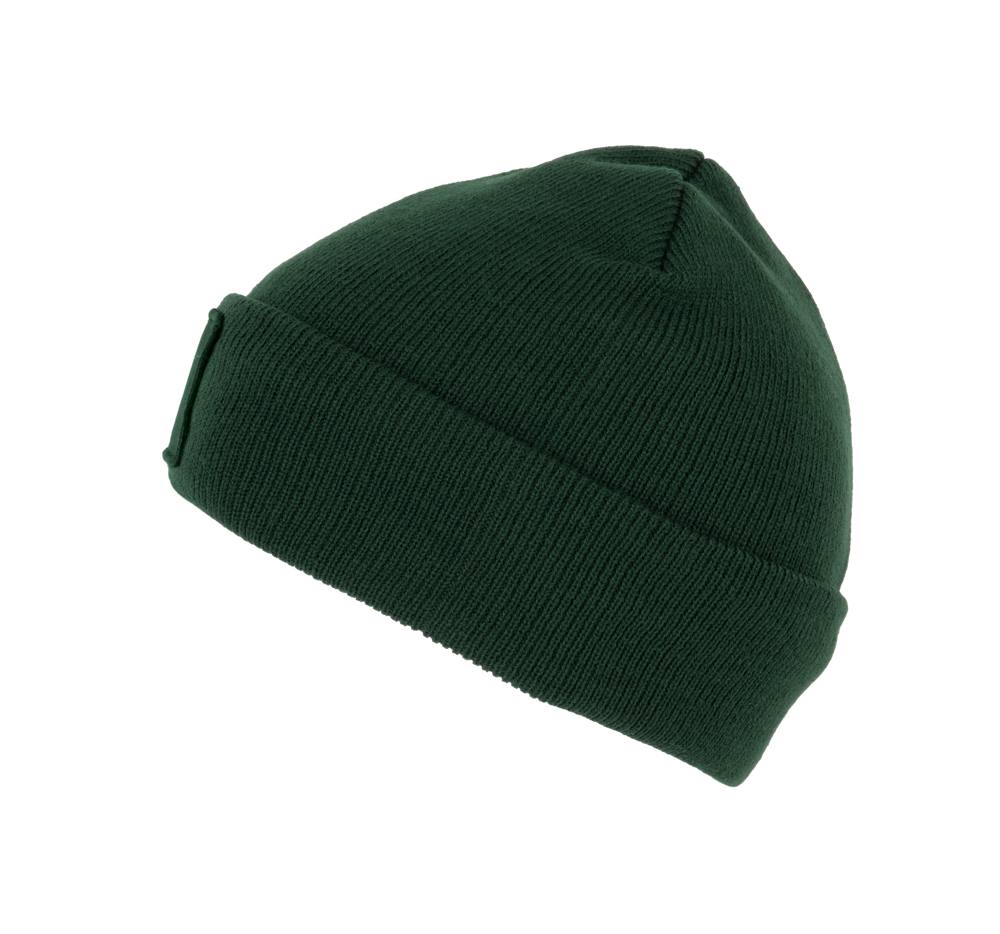 100% acryl. Gebreide muts met omslag in zacht acryl. Katoenen patch aan de voorkant, voor eenvoudige personalisatie. Tear-away merklabel.