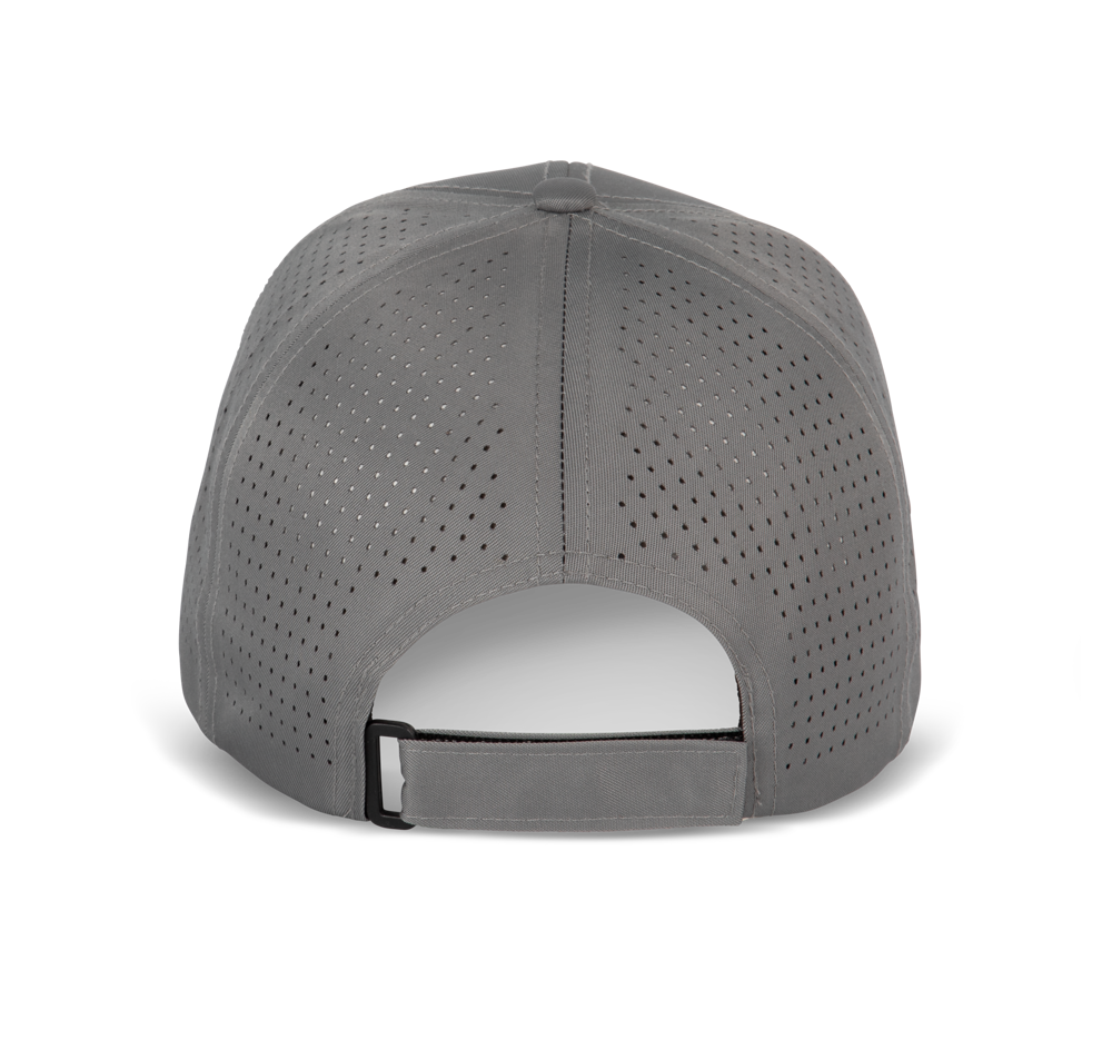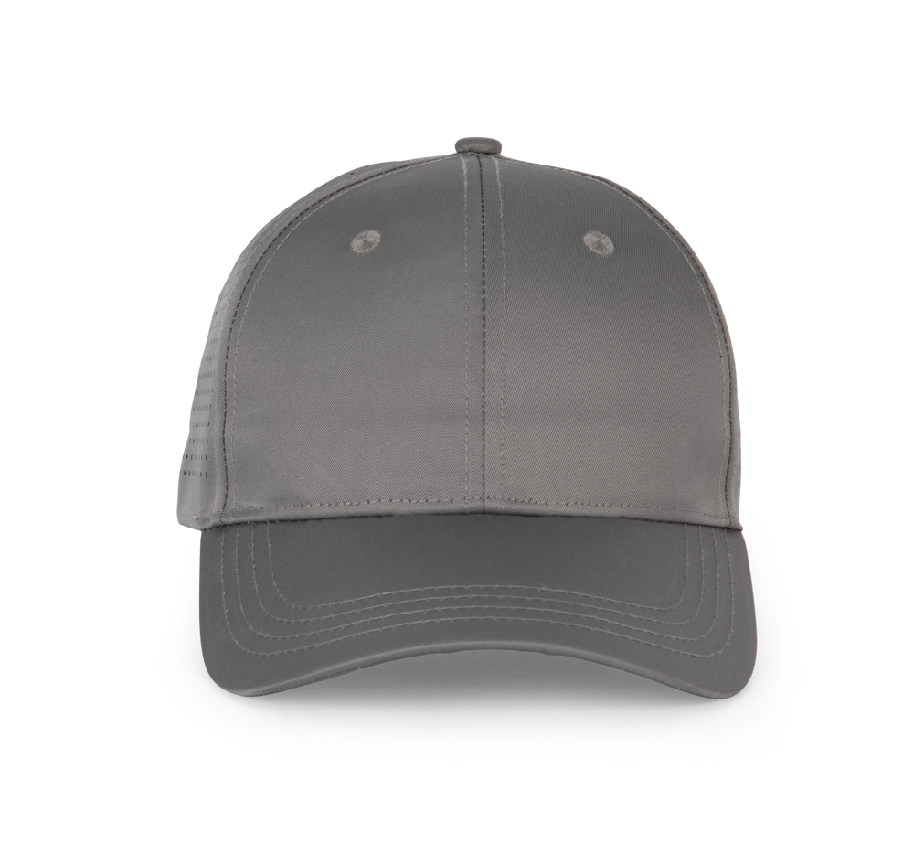 100% gerecycleerd polyester. De 4 achterpanelen zijn met de laser microgeperforeerd voor een uitstekende ventilatie. Gewelfde klep en klittenbandsluiting.
