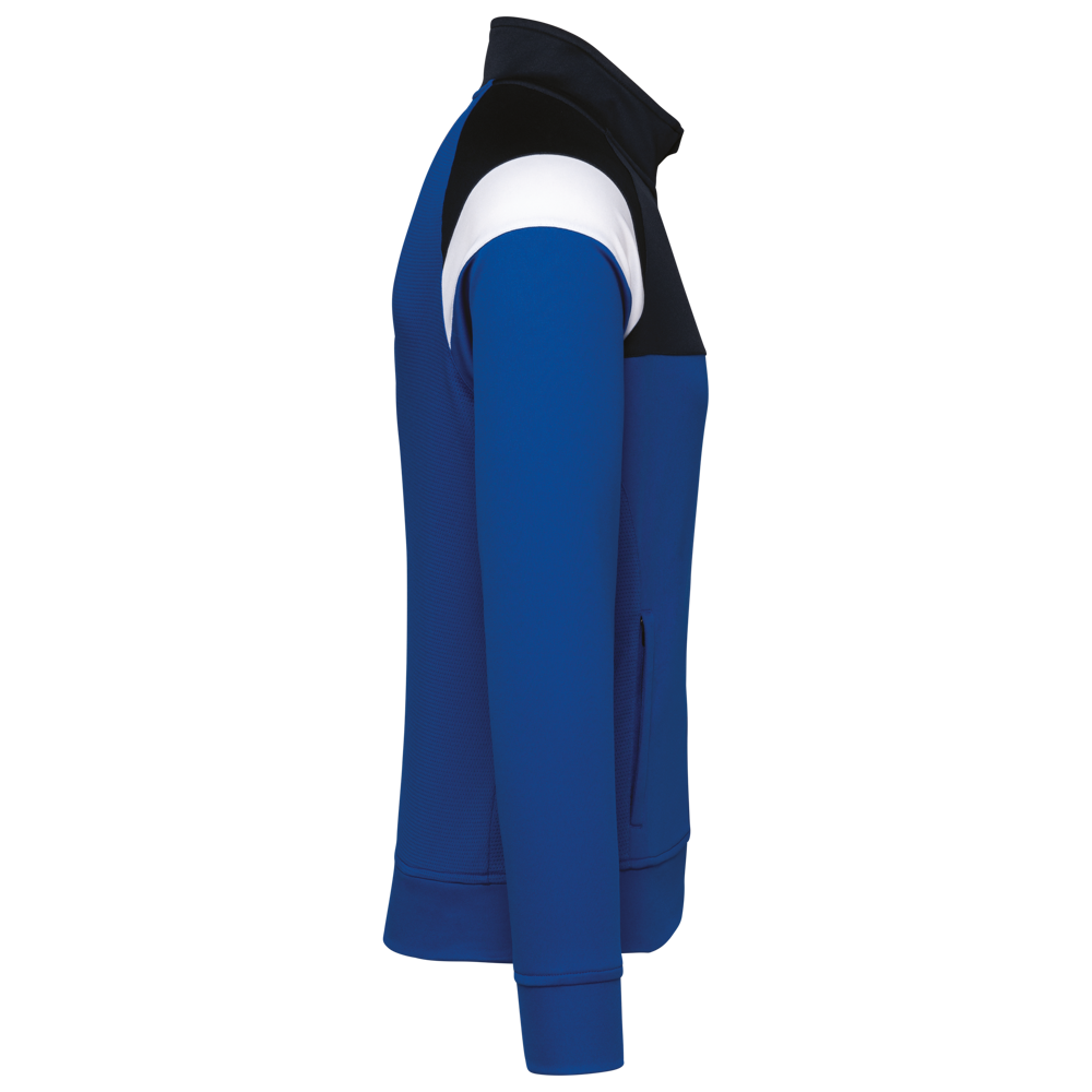 100% mat interlockpolyester. Rechte snit. Kraag met een omgekeerde ton-sur-ton nylonrits. Raglanmouwen met contrasterende inzetsels aan de schouder. Contrasterend inzetsel aan schouder en borst. Inzetsels in textuurstof opzij en achteraan. Zoom onderaan en verlengd achterpand. Zijsplitten voor meer gemak. Ritsafdekking boven aan de kraag, voor meer comfort. Afneembaar merklabel voor eenvoudige personalisatie.