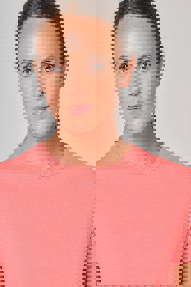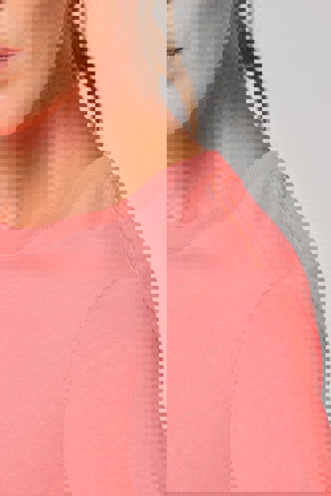 50% polyester / 25% katoen / 25% viscose. Jerseystof. Met antipluisbehandeling. Ronde hals. Rechte snit. Croptop. Ton-sur-ton nektape aan de halsopening. Dubbel stiksel aan de mouwuiteinden en aan de zoom. Buisvormige afwerking aan de mouwuiteinden. Geen merklabel, maar enkel een maatlabel voor eenvoudige personalisatie.