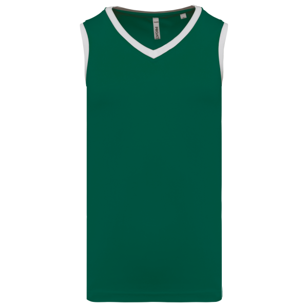 100% birdseye-polyester. V-hals. Contrasterend biesje aan hals en armsgaten. Dubbel stiksel op de zoom onderaan. Afneembaar merklabel.