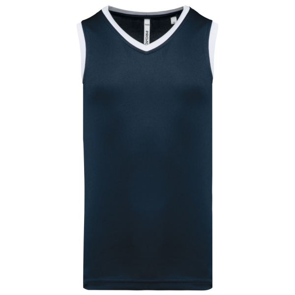 100% birdseye-polyester. V-hals. Contrasterend biesje aan hals en armsgaten. Dubbel stiksel op de zoom onderaan. Afneembaar merklabel.
