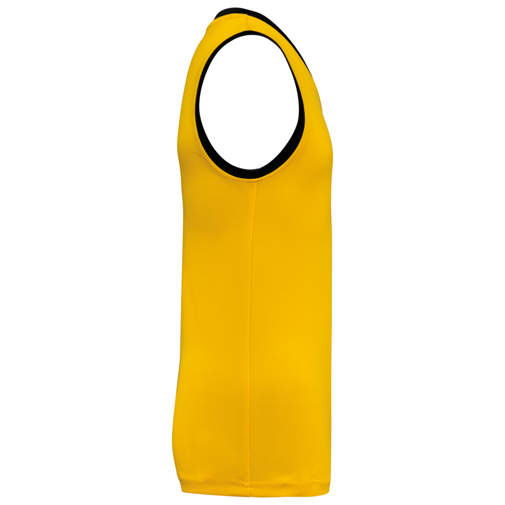 100% birdseye-polyester. V-hals. Contrasterend biesje aan hals en armsgaten. Dubbel stiksel op de zoom onderaan. Afneembaar merklabel.