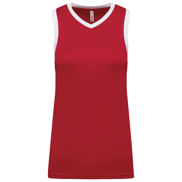100% birdseye-polyester. V-hals. Contrasterend biesje aan hals en armsgaten. Dubbel stiksel op de zoom onderaan. Afneembaar merklabel.