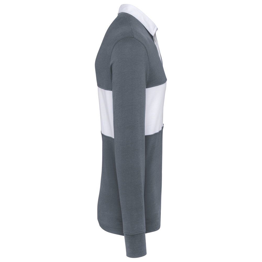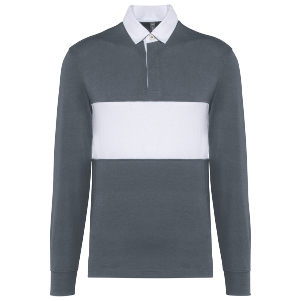 100 % katoen. Jerseystof. Regular fit. Kraag en knooplijst aan de binnenkant van wit twillkatoen. Knooplijst met 3 rubberen knopen. Mouwuiteinden in ribboord 1x1. Toon-op-toon nektape met visgraatmotief aan de kraag. Centrale strook aan de voorkant en de achterkant in contrasterende kleur. Zijsplitten onderaan met toon-op-toon visgraatmotief. Dubbel stiksel aan de mouwinzetten en -uiteinden. Afwerkingen met dubbel stiksel onderaan. Afneembaar merklabel.