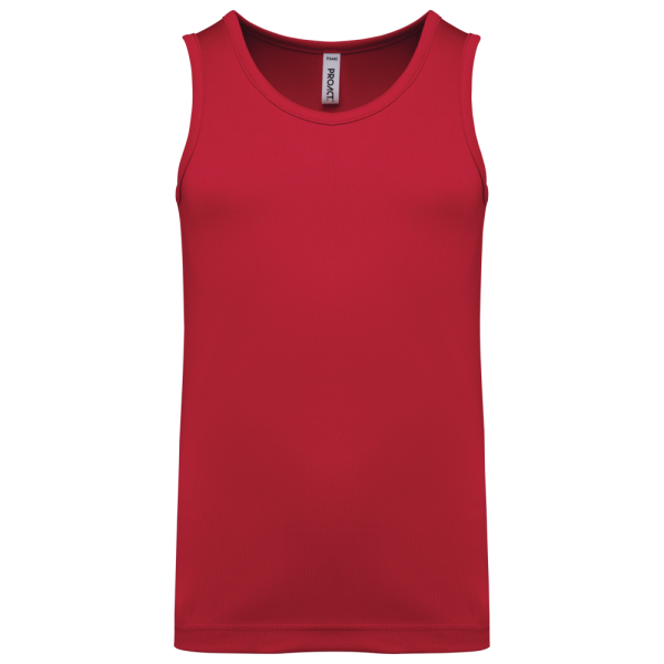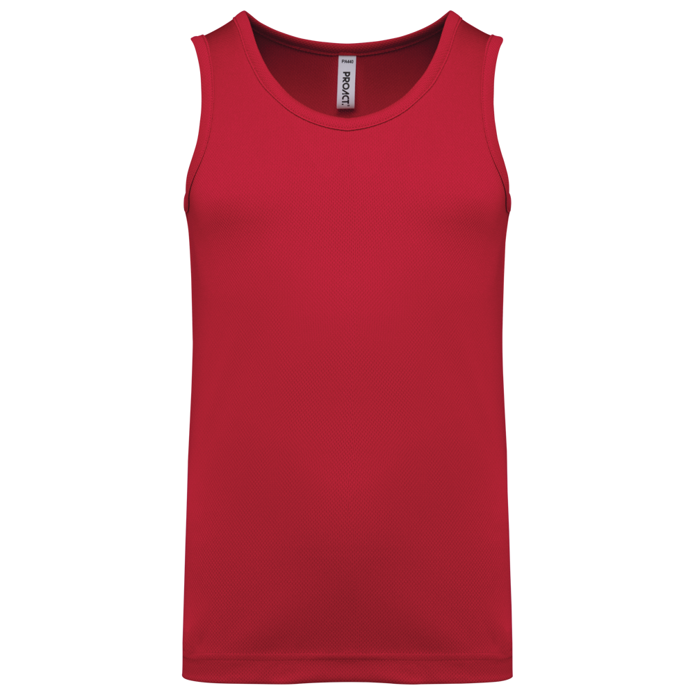 100% birdseye-polyester. Lichte, sneldrogende stof. Biesje aan halsopening en armsgaten. Dubbel stiksel op de zoom onderaan. Afneembaar merklabel.