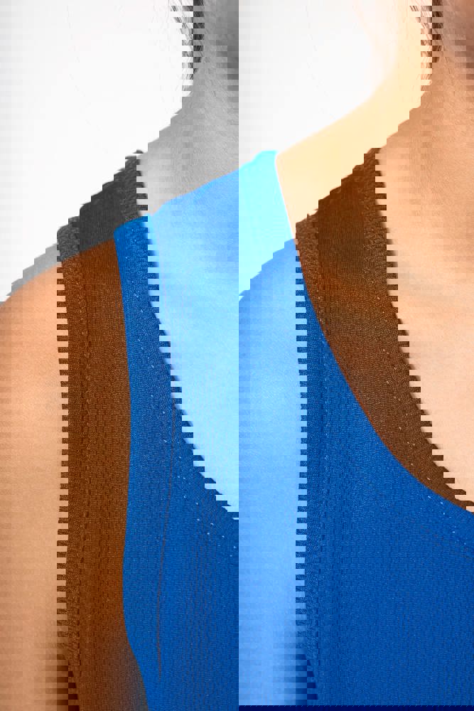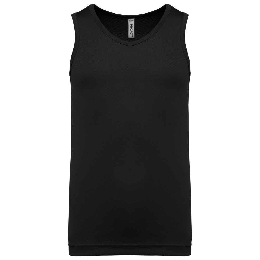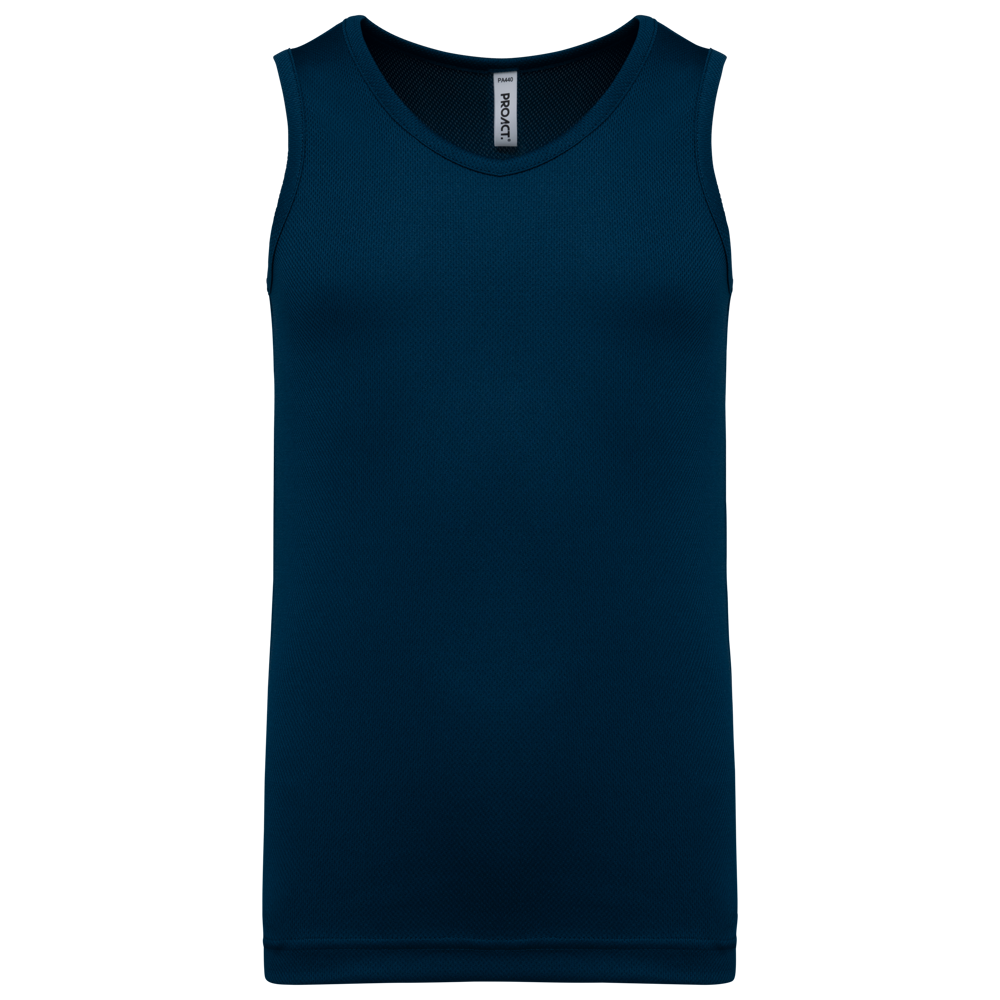 100% birdseye-polyester. Lichte, sneldrogende stof. Biesje aan halsopening en armsgaten. Dubbel stiksel op de zoom onderaan. Afneembaar merklabel.