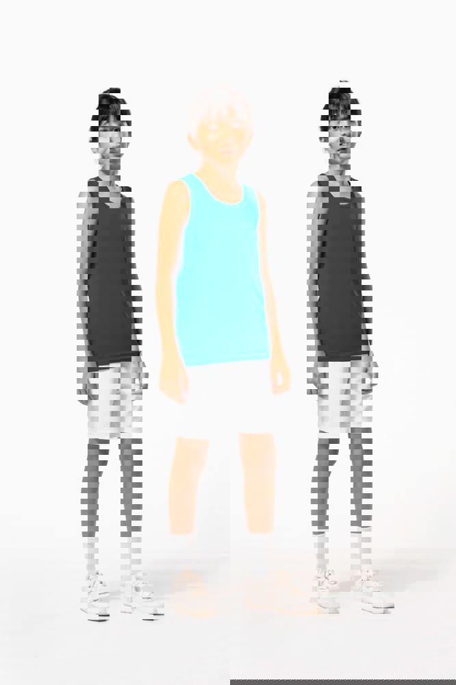 100% birdseye-polyester. Lichte, sneldrogende stof. Biesje aan halsopening en armsgaten. Dubbel...meer