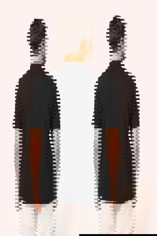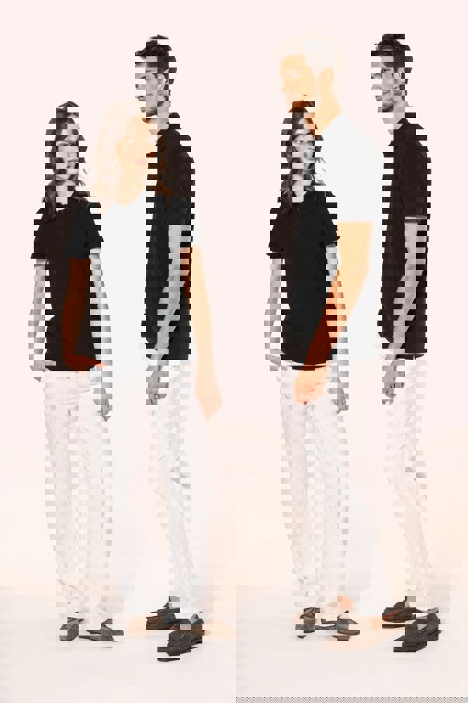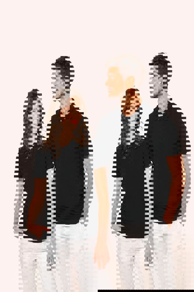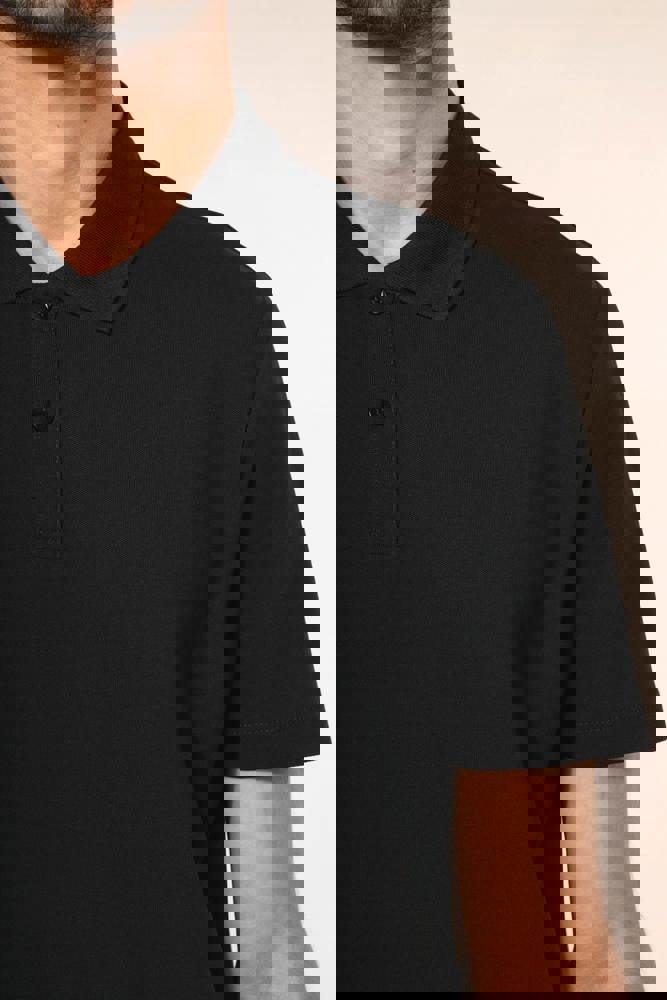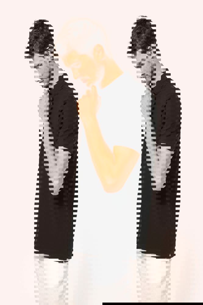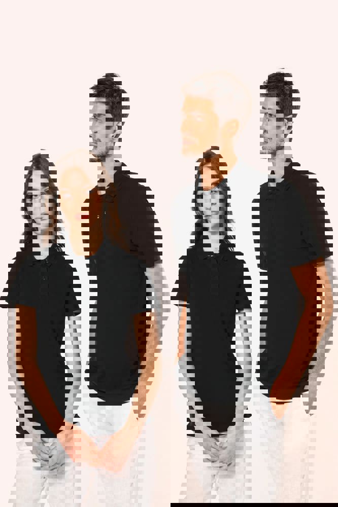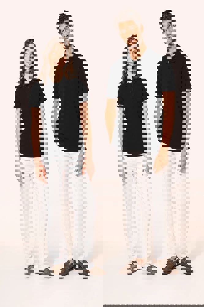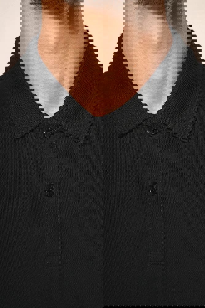 95% katoen / 5% elasthan. Piquétricot van Supima® katoen. Heel fijne, zachte en zijdeachtige stof van grote kwaliteit. Kraag in 1x1 ribboord, ton-sur-ton nektape aan de binnenkant van de kraag. Ton-sur-ton lijst met 2 knopen. Versteviging van de schoudernaad met een silicone bandje. De mouwuiteinden en onderkant zijn afgewerkt met een zoompje met dubbel stiksel. Geen merklabel in de kraag, maar enkel een maatlabel voor eenvoudige personalisatie.