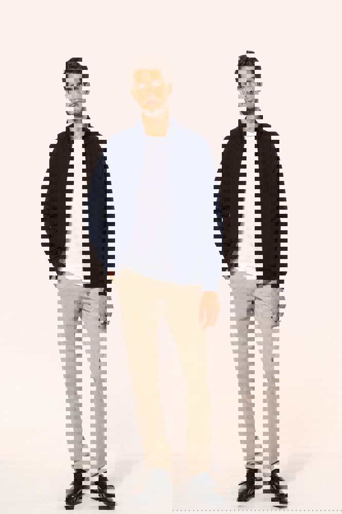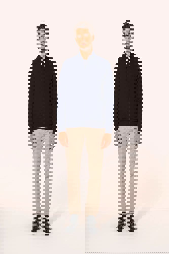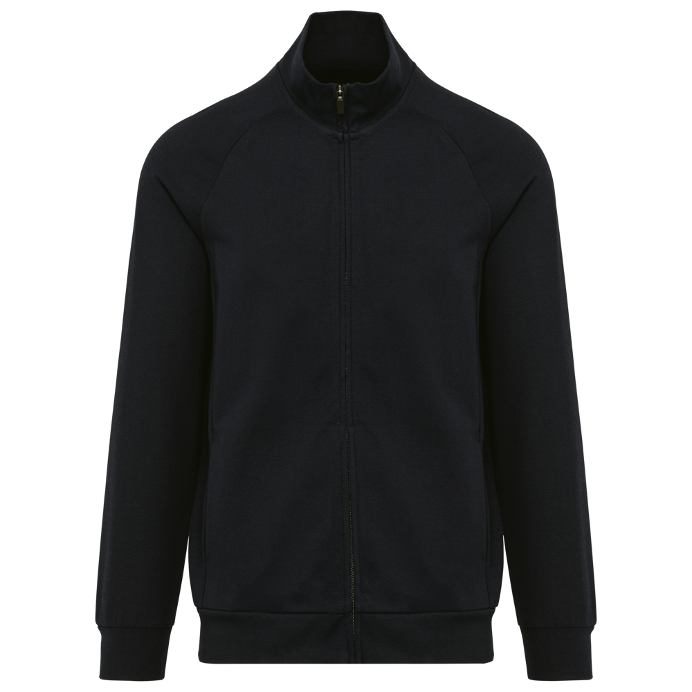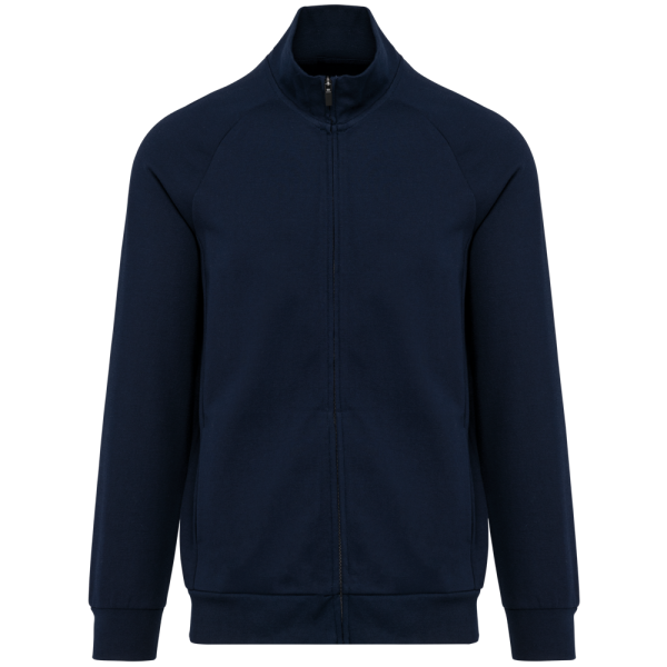 70% katoen / 26% polyester / 4% elasthan. Gekamd katoen. Interlockstof. LSI-behandeling (Low Shrinkage Interlock). Stiksel in de kraag. Nektape aan de binnenkant van de halsopening. Ton-sur-ton nylon rits met metalen trekker en nektape aan de binnenkant. Raglanmouwen. 1x1 ribboord. 2 zakken in de naad van het inzetsel. Geen merklabel, maar enkel een maatlabel voor eenvoudige personalisatie.