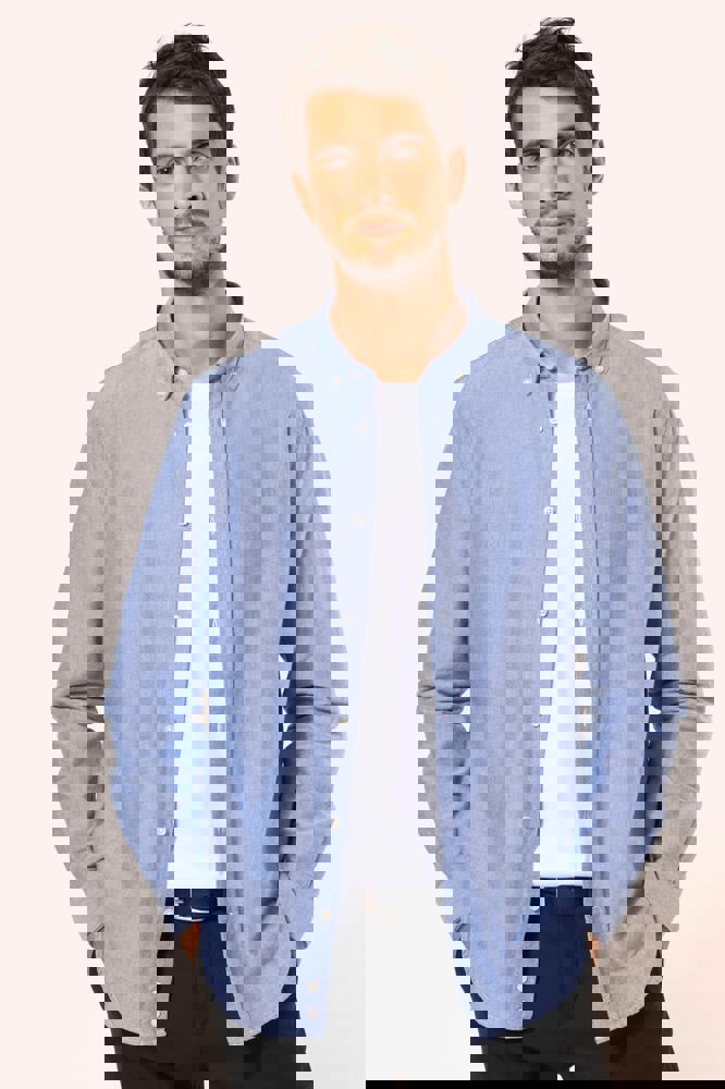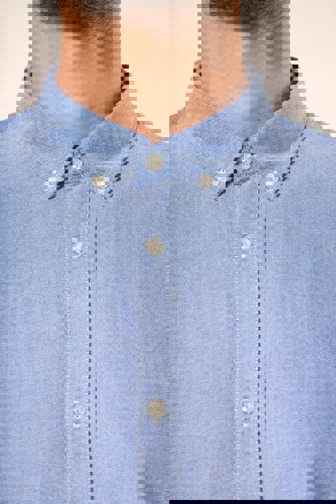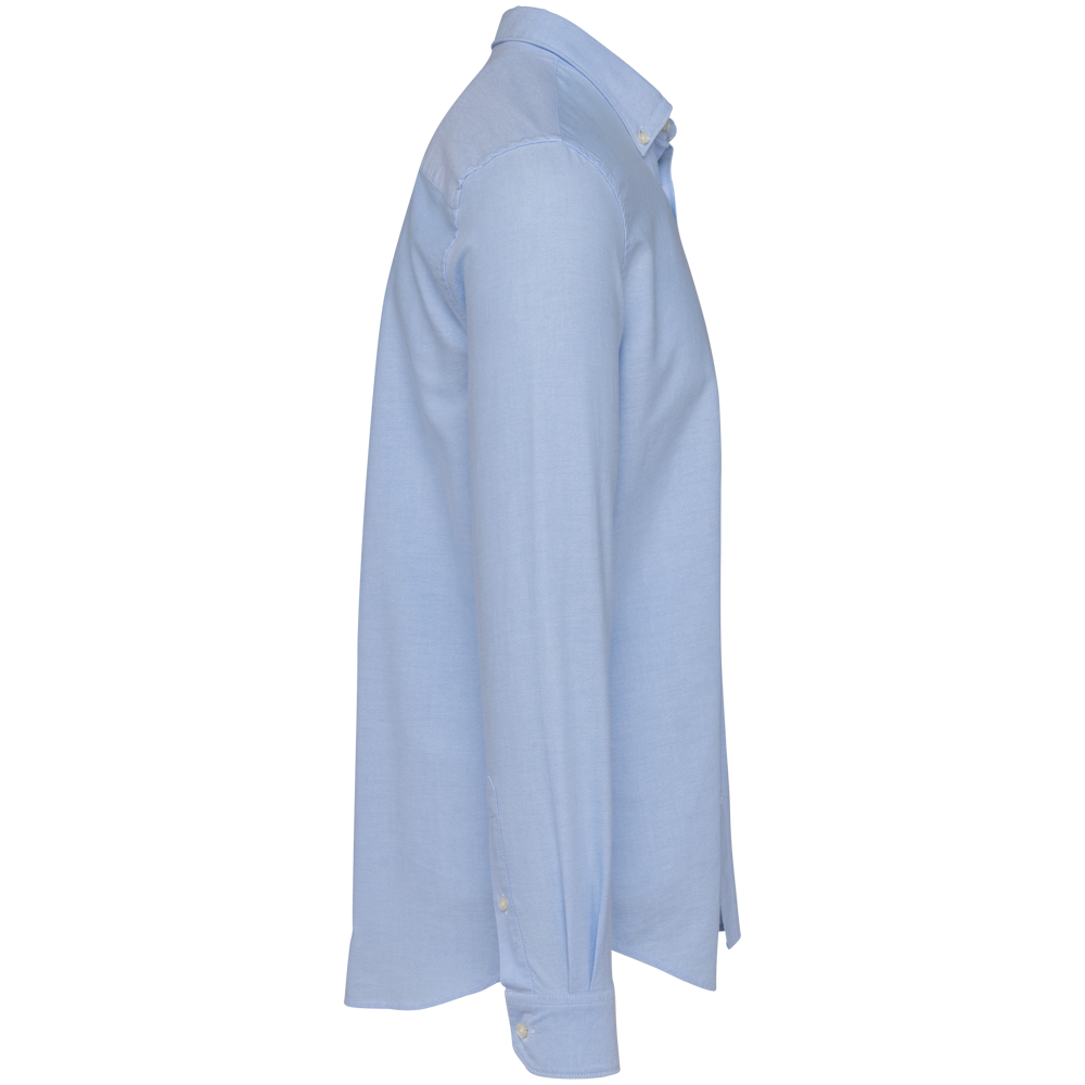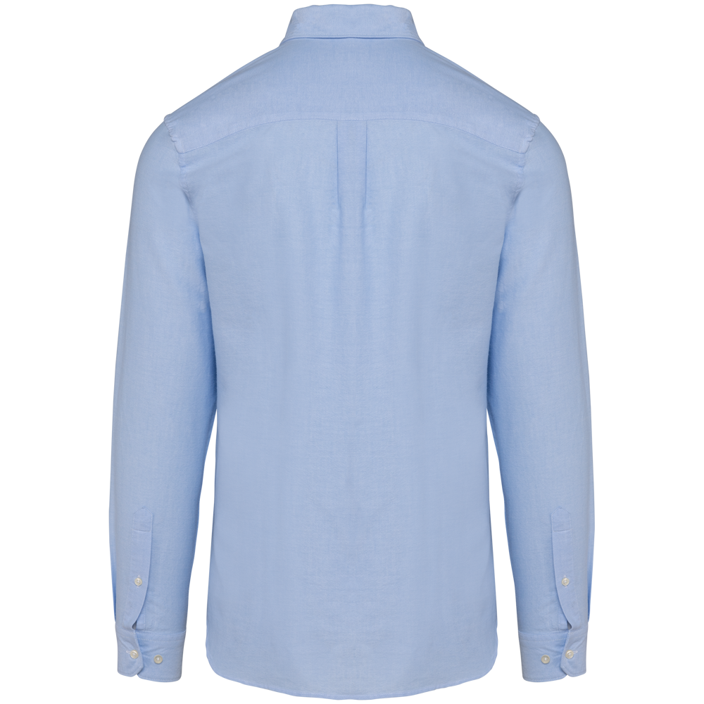 100% katoen. Gekamd katoen. Oxford stof. Rechte snit. Button-down overhemd kraag. Knoop met wit pareleffect op alle kleuren. Knoopsluiting middenvoor. Gevoerd rugjuk met plooien. Lange mouwen met verstelbare manchetten met afgeronde hoeken en geknoopt lipje. Geen merklabel, alleen een Tear Away label voor eenvoudige personalisatie. Gemaakt in Portugal.