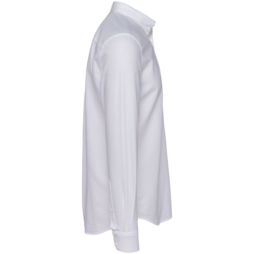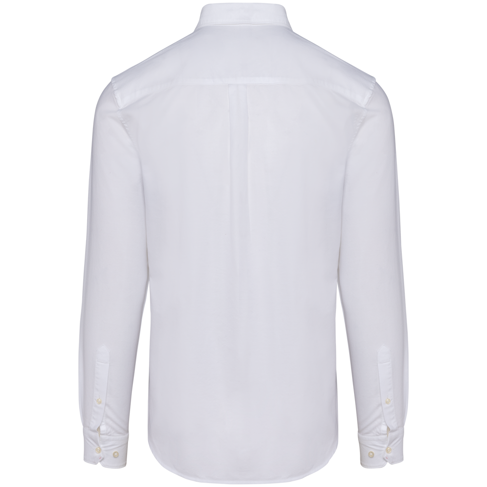 100% katoen. Gekamd katoen. Oxford stof. Rechte snit. Button-down overhemd kraag. Knoop met wit pareleffect op alle kleuren. Knoopsluiting middenvoor. Gevoerd rugjuk met plooien. Lange mouwen met verstelbare manchetten met afgeronde hoeken en geknoopt lipje. Geen merklabel, alleen een Tear Away label voor eenvoudige personalisatie. Gemaakt in Portugal.