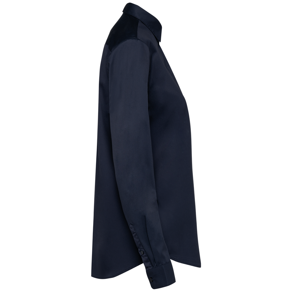 100% katoen. Twillstof. Gemakkelijk in onderhoud (EasyCare-behandeling). Dubbel getwijnd garen 80 x 2 van topkwaliteit. Inzetsel aan de bovenkant van de rug. Onzichtbare knooplijst. Paarlemoeren knoopjes. Manchetten met 2 knopen met afgeronde hoeken. Geen merklabel, maar enkel een maatlabel voor eenvoudige personalisatie.