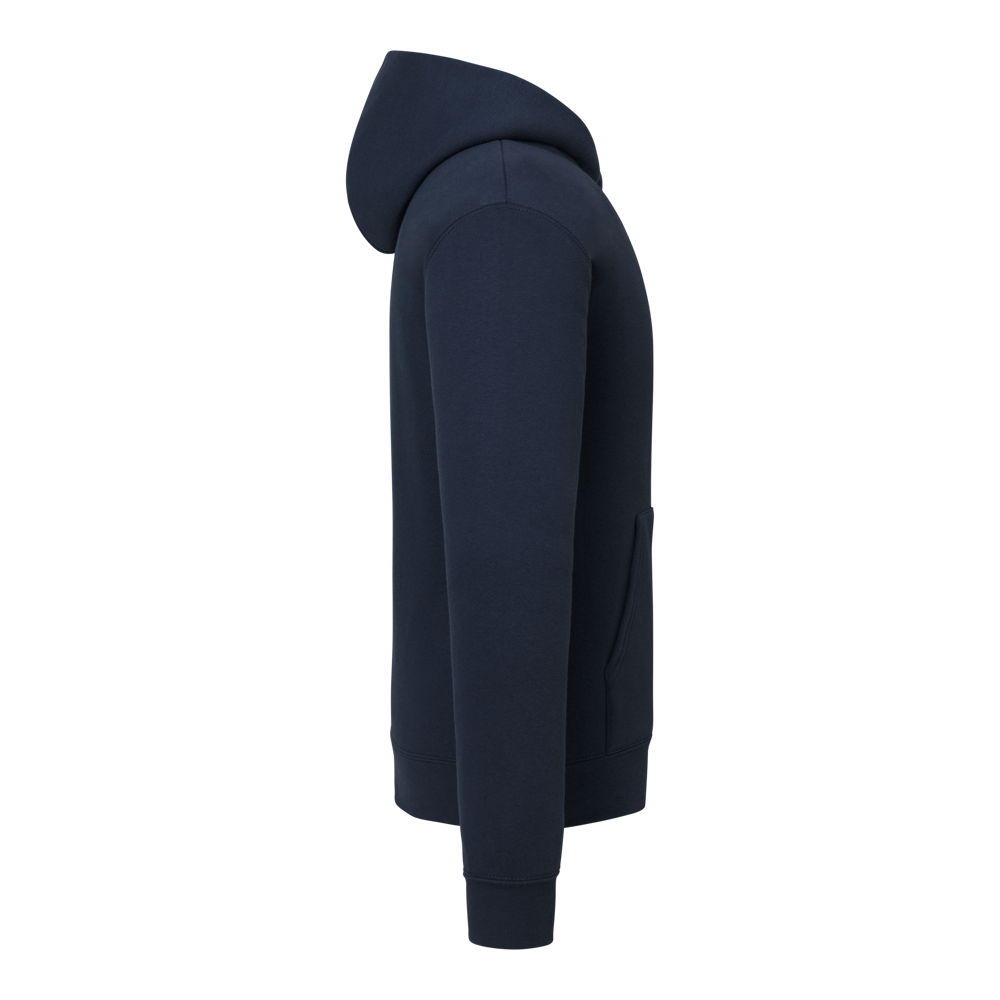 70% katoen / 30% polyester. Klassieke pasvorm. Kangoeroezak. 1x1 geribde manchetten en tailleband.