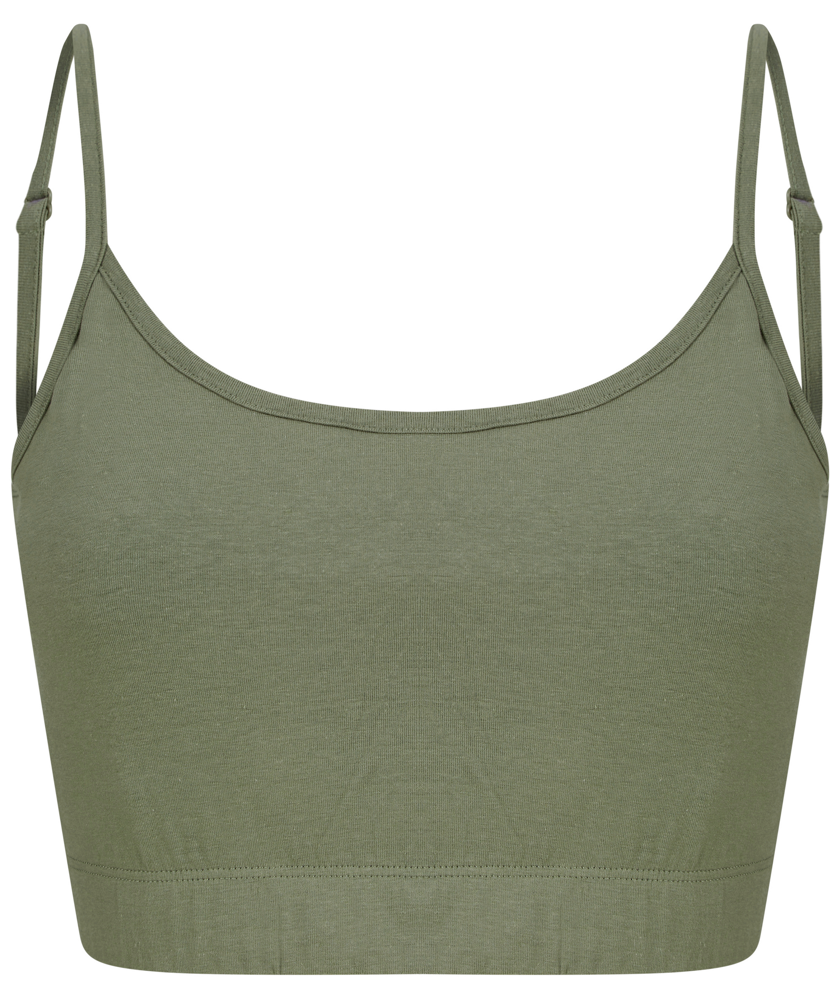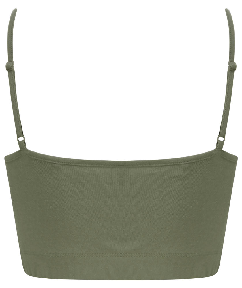 48% geregenereerd katoen / 47% gerecycleerd polyester/ 5% elasthan. Korte top. Regelbare schouderbandjes. Dubbele dikte aan de voorkant. Geribde elastische band. Zonder etiket.