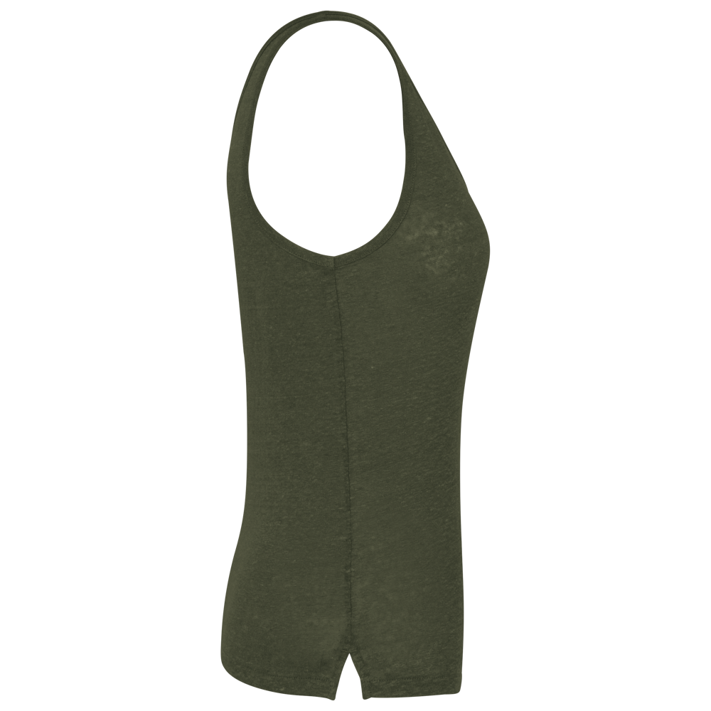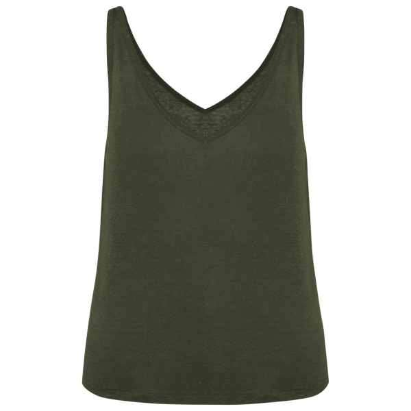 100% linnen. Tricot. Regular fit. Halsopening aan de voorkant en V op de rug. Bies in...meer