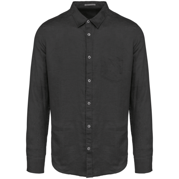100 % Linnen. Geweven. Afgewassen blouse. Rechte snit. Klassieke knooplijst met knopen met parelmoereffect. Borstzak aan de linkerkant Inzetsel op de rug met plooi voor meer bewegingsvrijheid. Knopen op de polsband met verstelbaar uiteinde. Contrasterend Natural biesje aan de binnenkant van de kraagstaander. De kleur Linen werd niet geverfd en kan variëren van product tot product.