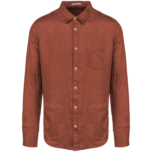 100 % Linnen. Geweven. Afgewassen blouse. Rechte snit. Klassieke knooplijst met knopen met parelmoereffect. Borstzak aan de linkerkant Inzetsel op de rug met plooi voor meer bewegingsvrijheid. Knopen op de polsband met verstelbaar uiteinde. Contrasterend Natural biesje aan de binnenkant van de kraagstaander. De kleur Linen werd niet geverfd en kan variëren van product tot product.