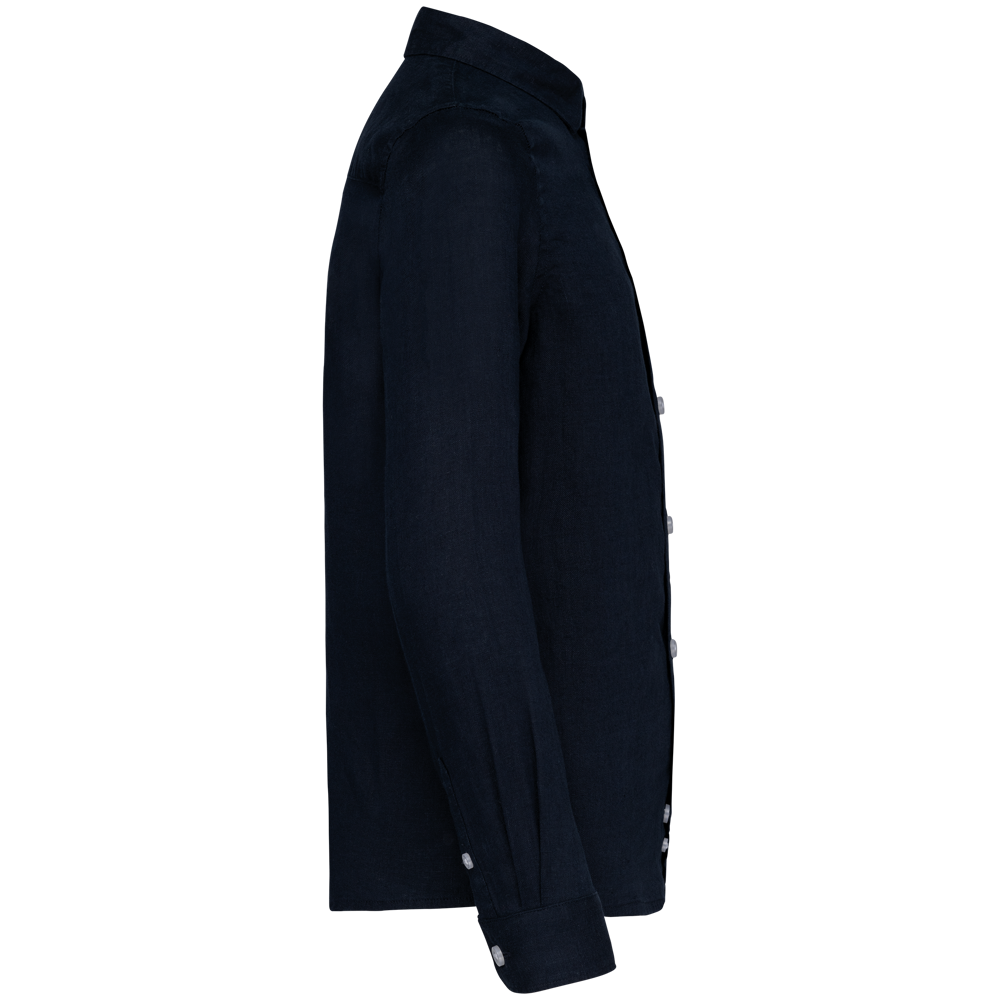 100% linnen. Geweven. Rechte snit. Zijnaden. Knooplijst met contrasterende parelmoeren knoopjes...meer