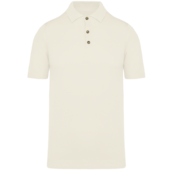 100% biokatoen. Gekamd katoen. Gauge 12. Rechte snit. Knooplijst met 3 knopen. Contrasterende...meer