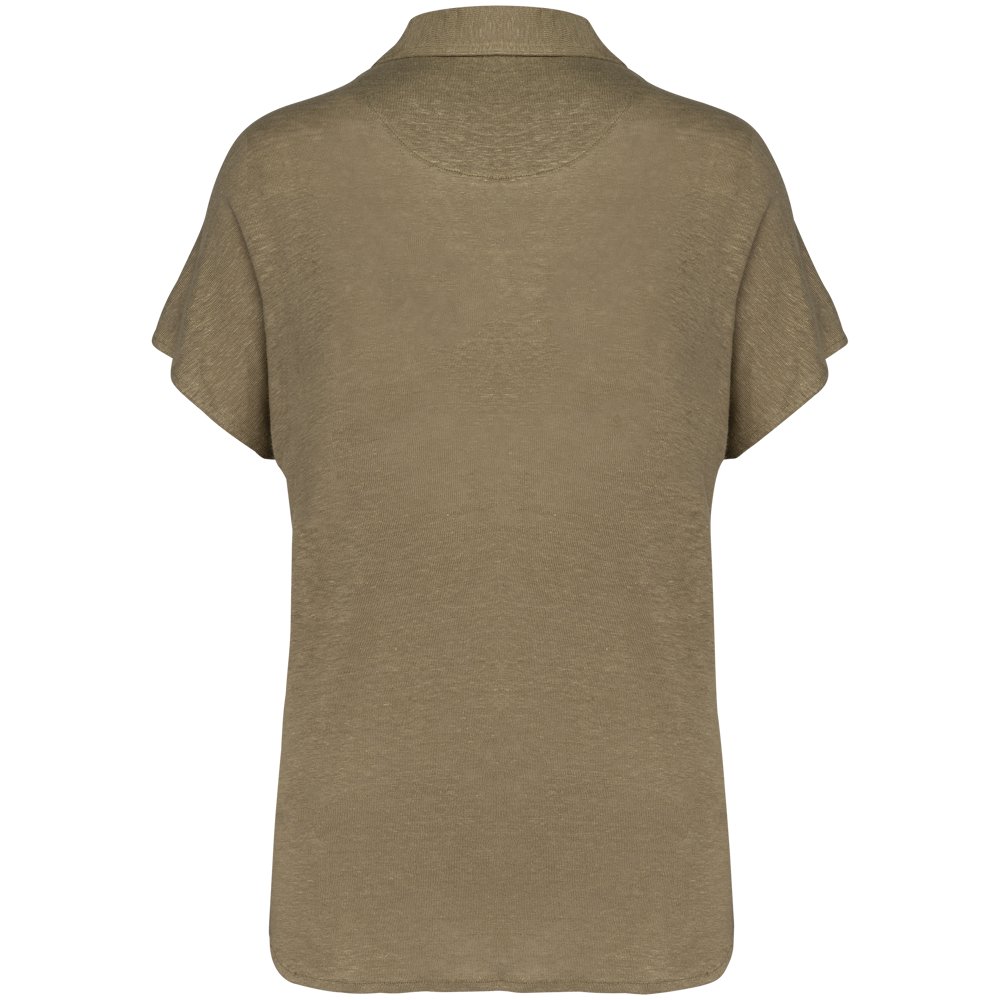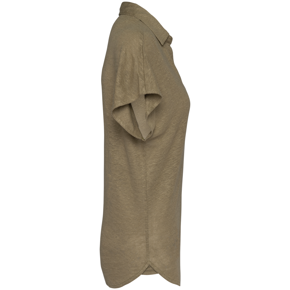100 % Linnen. Tricot. Regular fit met afhangende mouwen. Zijsplitten met een driehoekje. Polokraag met staander en V-hals met knooplijst zonder knoop in de hoofdstof. Dubbel stiksel aan de mouwboorden en de zoom. Halvemaan op de achterkant.