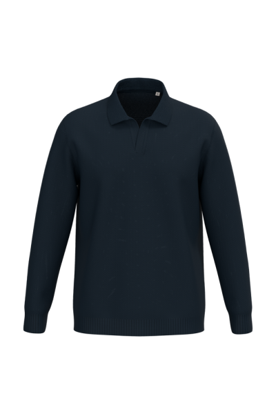 100% katoen. Gekamd katoen. Tricot. Gauge 7. Rechte snit. Kraag en V-hals zonder knoopje in polostijl. 1x1 ribboord in de kraag. 2x2 ribboord aan de zoom en de mouwuiteinden. Breiwerk in 'Fully Fashion'. Gemiddeld gewicht in maat L: 460 g.