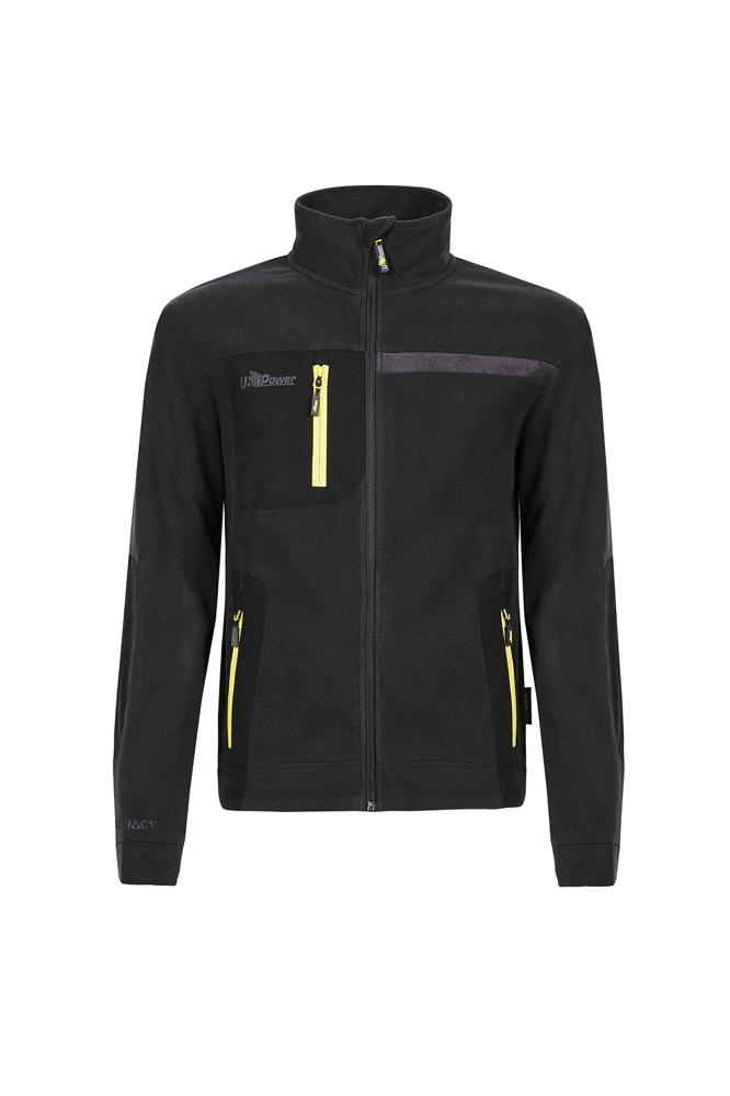 100% polyester. Dit fleece sweatshirt met rits is gemaakt van een innovatieve Polartec Eco-Engineering microfleece stof gemaakt van 100% gerecycled materiaal van plastic flessen. Dit werk sweatshirt heeft hot press afwerkingen op de linkerkant van de torso en op de manchetten, terwijl de rechterkant een reflecterende print heeft van het 'U-Power' logo. Venus heeft 3 zakken: 2 onderaan en één verticale zak op de borst, allemaal met ritssluiting. Het sweatshirt is gemaakt van ecologisch verantwoord geproduceerde fleece met contrasterende elastische verstevigingen op de zakken, onderarm en onderaan de binnenzijde.