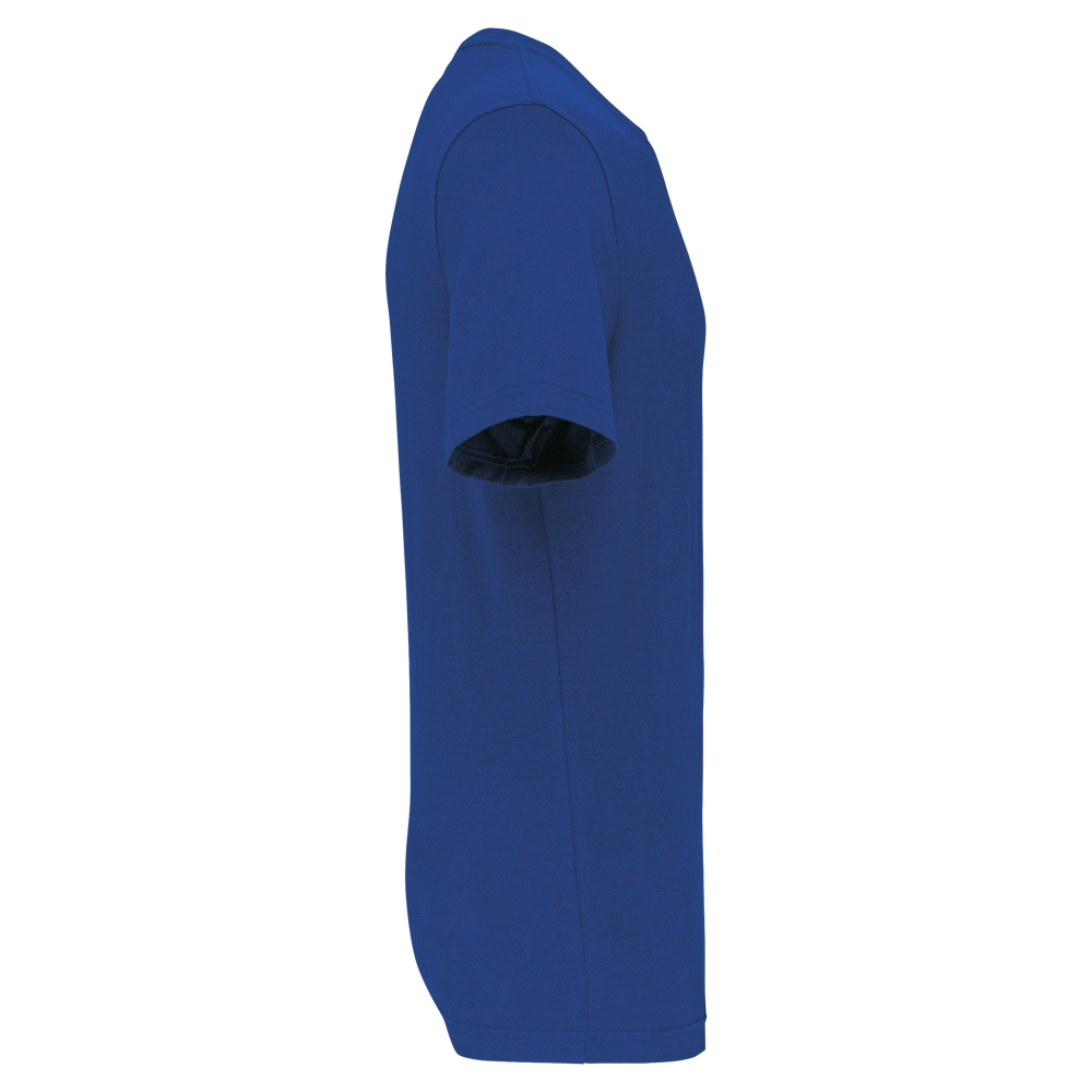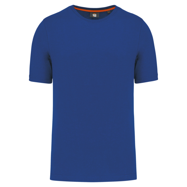 Effen kleuren : 60% katoen / 40% polyester. Gemaakt van 60% biologisch katoen en 40% gerecycled polyester. Kleur Oxford Grey : 90% katoen / 10% viscose. Gemaakt van 90% biologisch katoen. Alle kleuren zijn gemaakt van biologisch katoen. Zachte enzymgewassen stof. Wassen op 60°. Rechte snit. Ronde halsopening met 1x1 ribboord. Nektape met visgraatmotief in contrasterend oranje (verlengde van rug-schouder behalve de kleur wit). Verstevigde schoudernaad. Tear-away merklabel voor eenvoudige personalisatie.