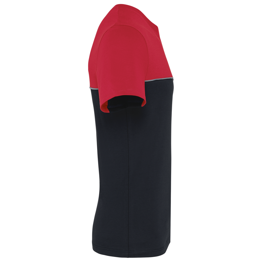 60% katoen / 40% polyester. Gemaakt van 60% gekamd katoen en 40% gerecycleerd polyester. Vortex-garen. Jersey. Anti-pluisbehandeling. Wasbaar op 60 °C. Rechte snit. Ronde halsopening in 1x1 ribboord met elasthan en contrasterende nektape met visgraatmotief.Contrasterende bies tussen de tweekleurige delen van het kledingstuk (lichaam, voorkant mouwen en rug). Dubbel stiksel aan mouwuiteinden en onderkant. Tear-away merklabel.