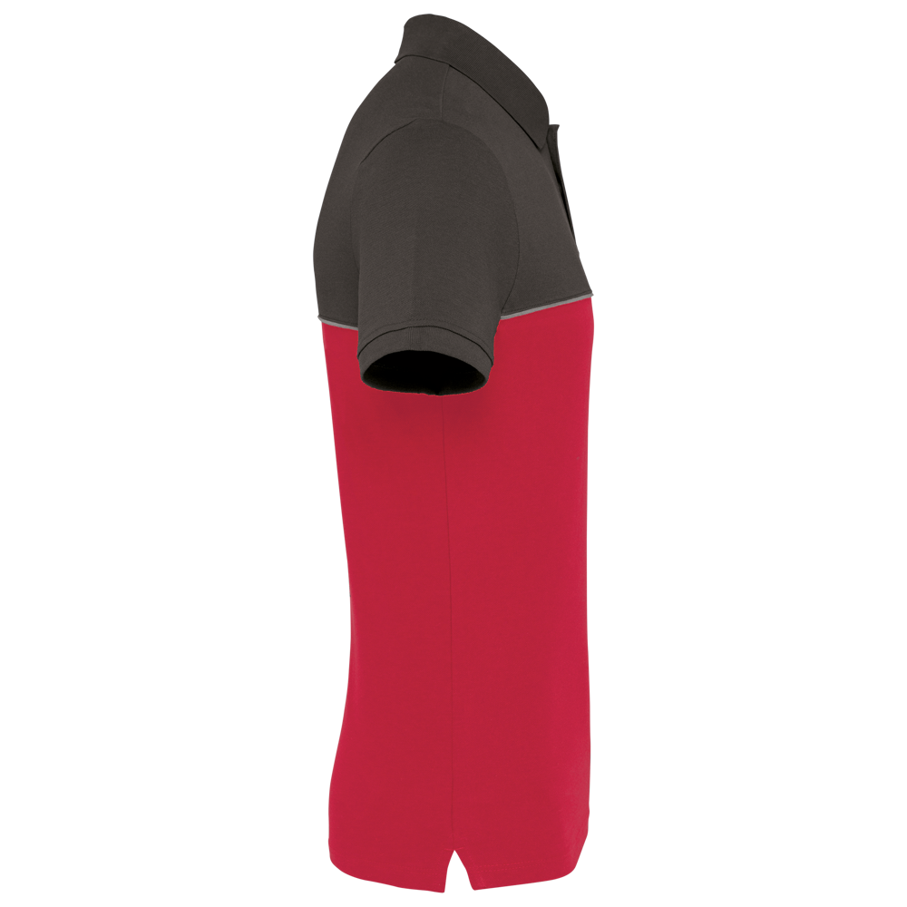 60% katoen / 40% polyester. Gemaakt van 60% gekamd katoen en 40% gerecycleerd polyester. Vortex-garen. Piquétricot. Anti-pluisbehandeling. Wasbaar op 60 °C. Rechte snit. Toon-op-toon lijst met 2 knopen. Kraag in 1x1 ribboord met contrasterende nektape met visgraatmotief.Contrasterende bies tussen de tweekleurige delen van het kledingstuk (lichaam, voorkant mouwen en rug). Afgewerkt met ribboord aan de mouwuiteinden. Zijsplitten met contrasterend visgraatmotief. Afwerking met dubbel stiksel onderaan. Tear-away merklabel.