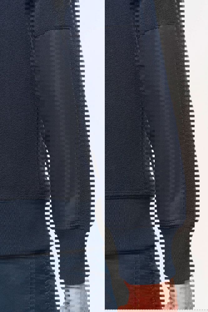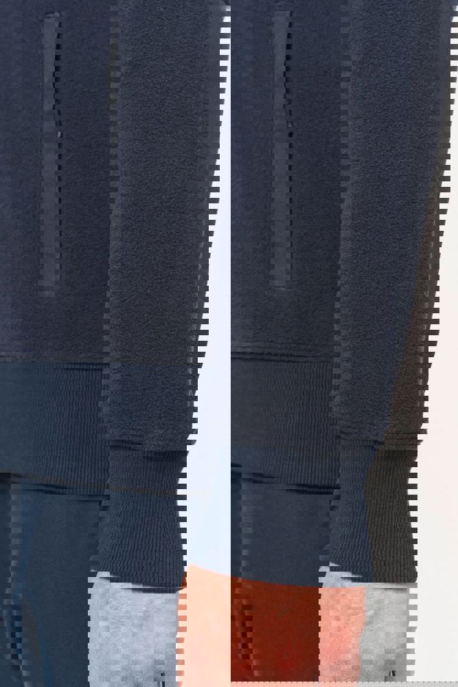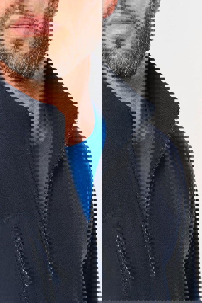 100% gerecycleerd polyester post-consumer. Rechte snit. 2 ritszakken met bies in taslan met ritstrekker aan de voorkant. 1 afgerond borstzakje met rits en ritstrekker in taslan met toon-op-toon stiksel rechts (bij het dragen). Kraag gevoerd met 2x2 ribtricot en rits van gerecycleerd plastic + ophanglus in de kraag. Verstevigende inzetsels aan schouders en voorarm in taslan. 2x2 ribboord in buisconstructie aan de mouwuiteinden en de onderkant. Afneembaar merklabel.