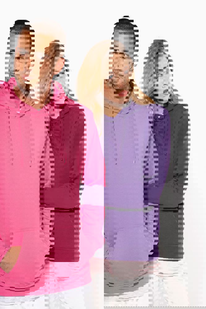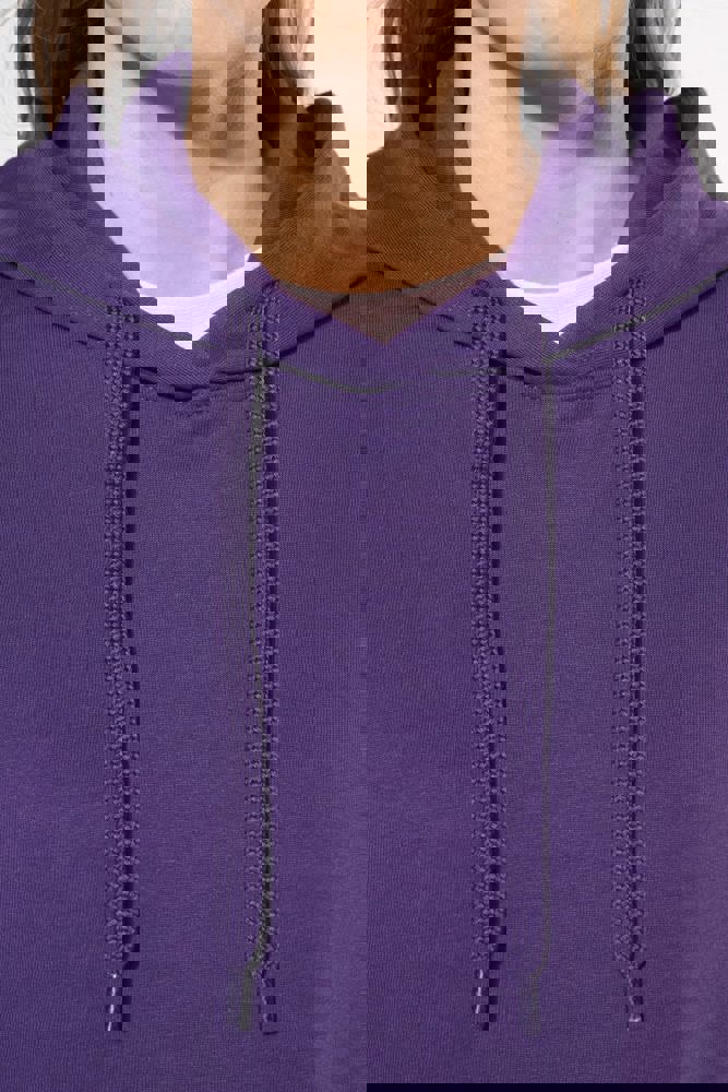 80% katoen / 20% polyester. Gekamd katoen. Geborsteld fleece aan de binnenkant. Ingezette mouwen. Gevoerde capuchon met toon op toon aanrijgkoordjes. Kangoeroezakken. Ribboord aan mouwuiteinden en aan de onderkant.
