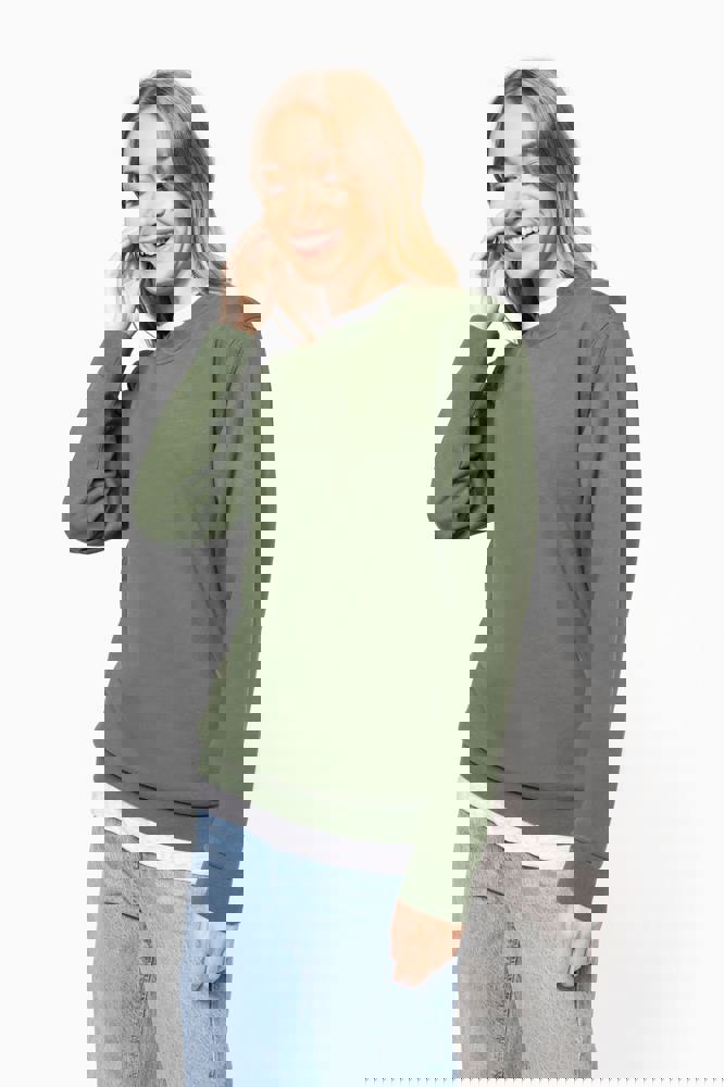 80% katoen/ 20% polyester. Gekamd katoen. Geborsteld fleece aan de binnenkant. Ingezette mouwen. Ribboord aan halsopening, mouwuiteinden en aan de onderkant.