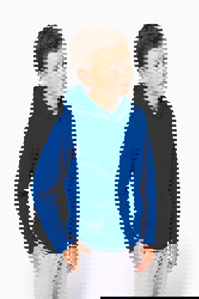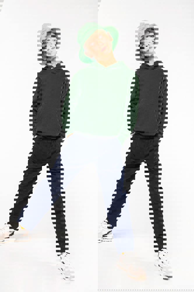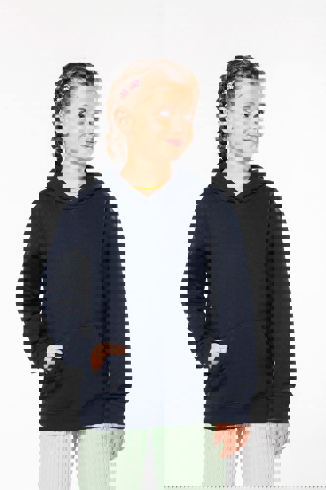 80% katoen / 20% polyester. Gekamd katoen. Geborsteld fleece aan de binnenkant. Ingezette mouwen. Gevoerde capuchon. Kangoeroezakken. Ribboord aan mouwuiteinden en aan de onderkant.