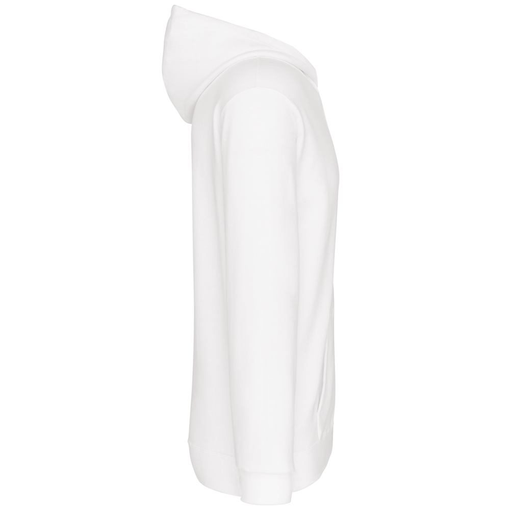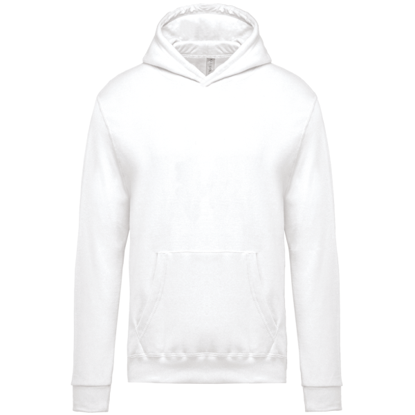 80% katoen / 20% polyester. Gekamd katoen. Geborsteld fleece aan de binnenkant. Ingezette mouwen. Gevoerde capuchon. Kangoeroezakken. Ribboord aan mouwuiteinden en aan de onderkant.