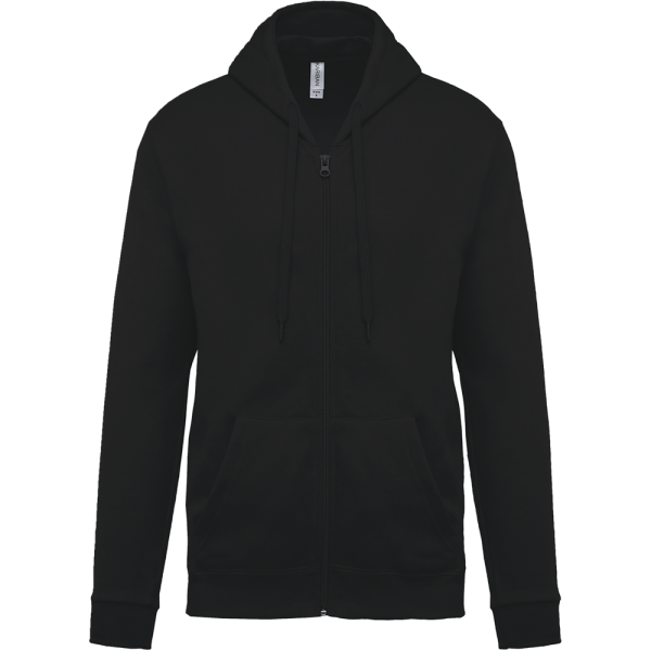 80% katoen / 20% polyester. Gekamd katoen. Geborsteld fleece aan de binnenkant. Ingezette mouwen. Nylon ritssluiting. Gevoerde capuchon met toon op toon aanrijgkoordjes. Kangoeroezakken. Ribboord aan mouwuiteinden en aan de onderkant.