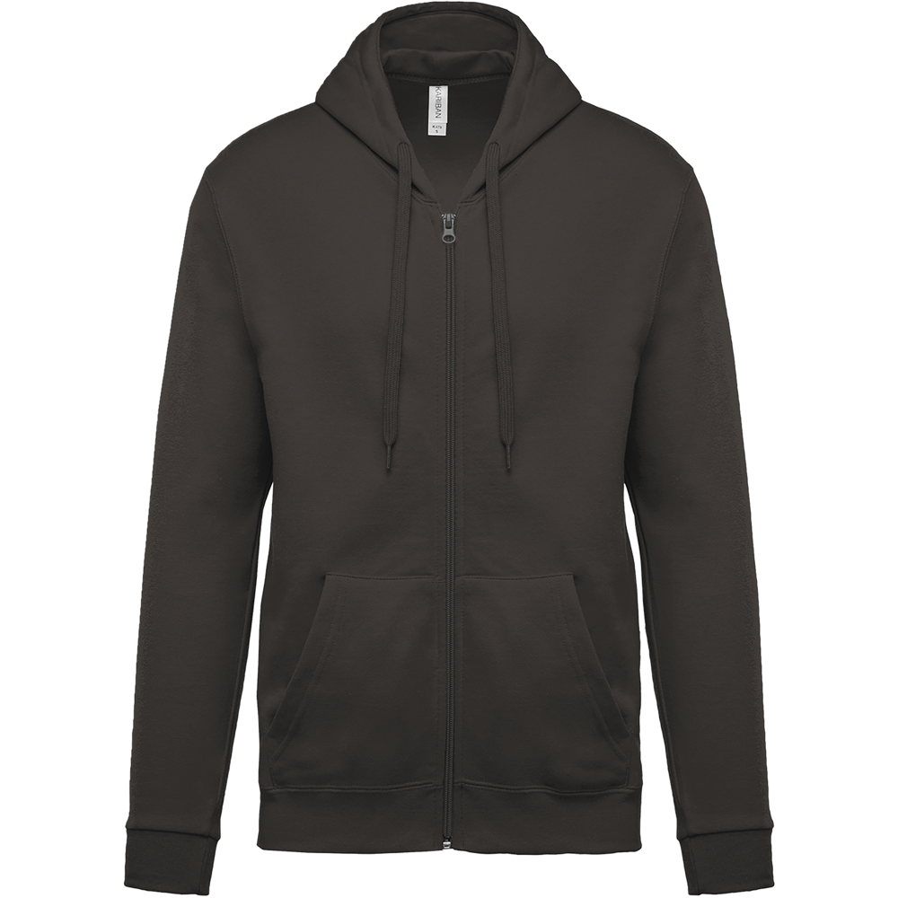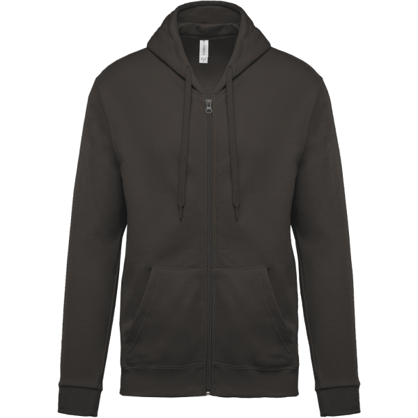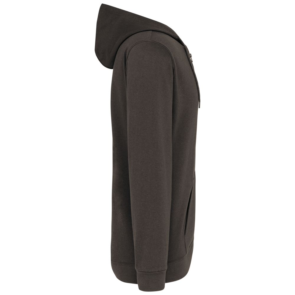 80% katoen / 20% polyester. Gekamd katoen. Geborsteld fleece aan de binnenkant. Ingezette mouwen. Nylon ritssluiting. Gevoerde capuchon met toon op toon aanrijgkoordjes. Kangoeroezakken. Ribboord aan mouwuiteinden en aan de onderkant.