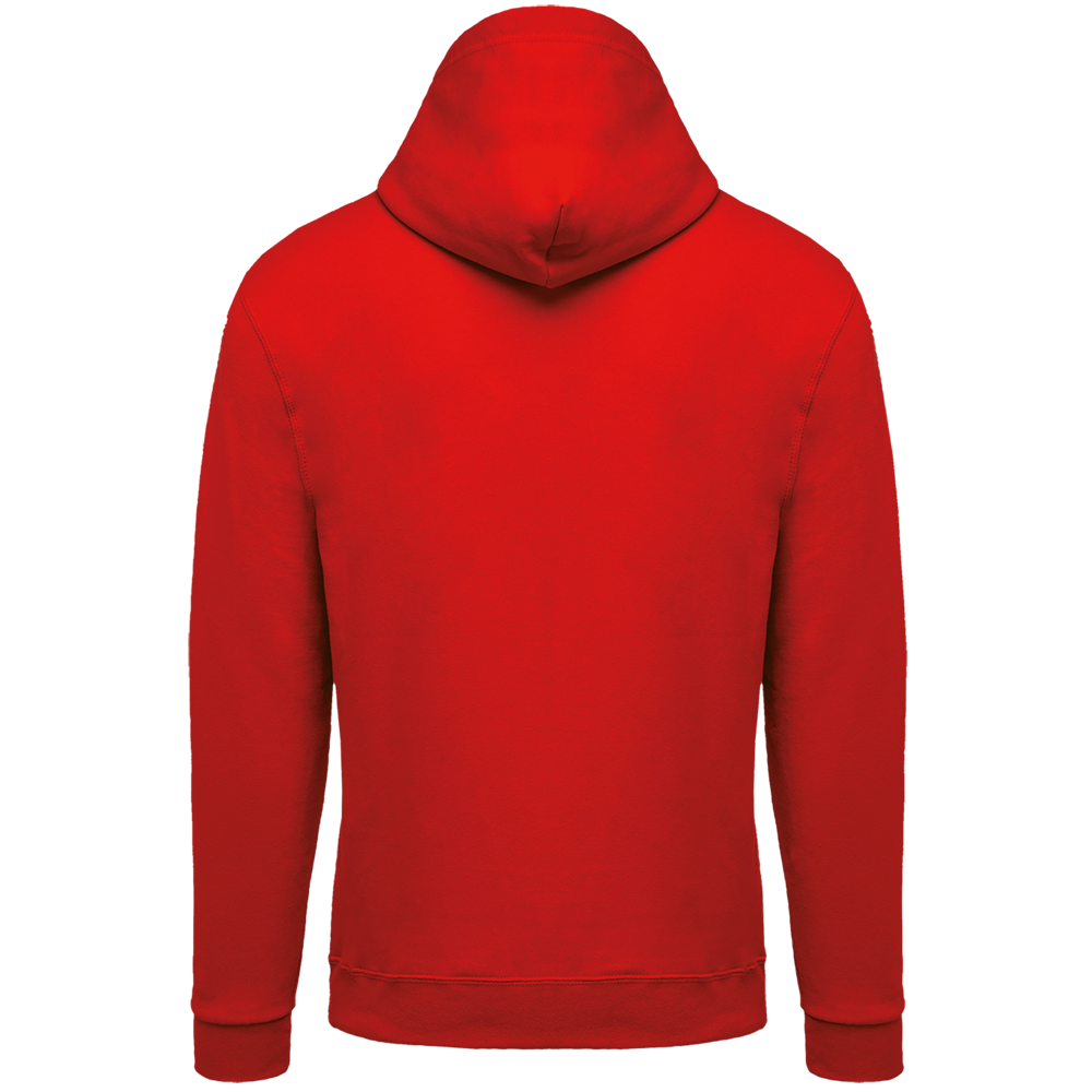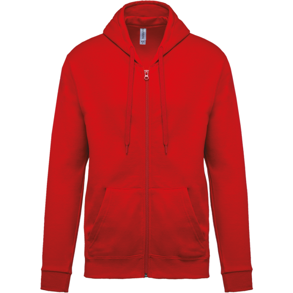80% katoen / 20% polyester. Gekamd katoen. Geborsteld fleece aan de binnenkant. Ingezette mouwen. Nylon ritssluiting. Gevoerde capuchon met toon op toon aanrijgkoordjes. Kangoeroezakken. Ribboord aan mouwuiteinden en aan de onderkant.